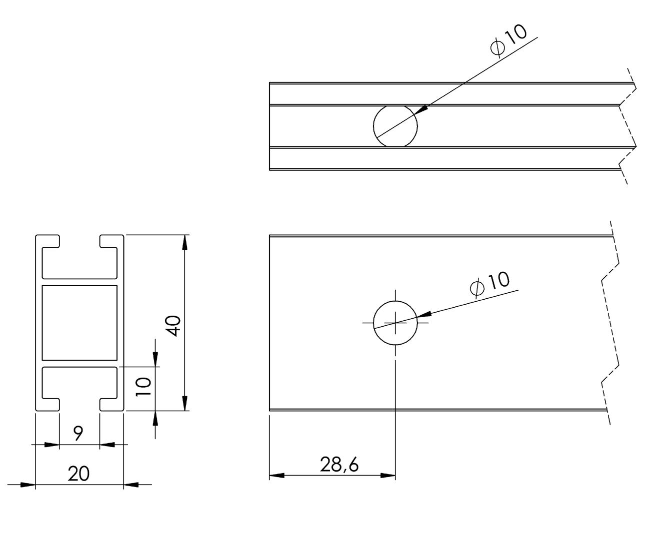 Standard, straight profiles: For any panel sitting between two uprights and two rails.