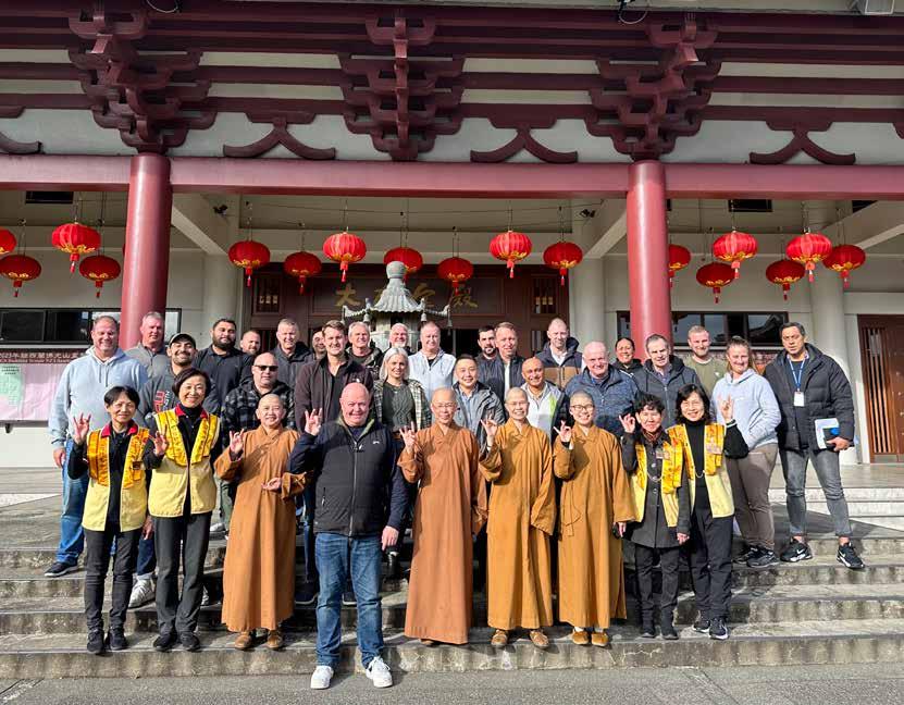 佛光山紐西蘭北島青年書院 2023 年展開 學習新旅程,10 位青年學員於每周末回 寺,協助烹調午餐、行堂、打掃等作務, 群策群力完成任務,於下午聚精會神聆 聽佛法,滿心歡喜學習。