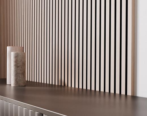 Die BY VENØ Abschlussleisten geben einer Wand mit Akustikpaneelen den letzten Schliff. Die Abschlussleisten kaschieren den Lamellenkern und verleihen der Wand einen exklusiveren Ausdruck.