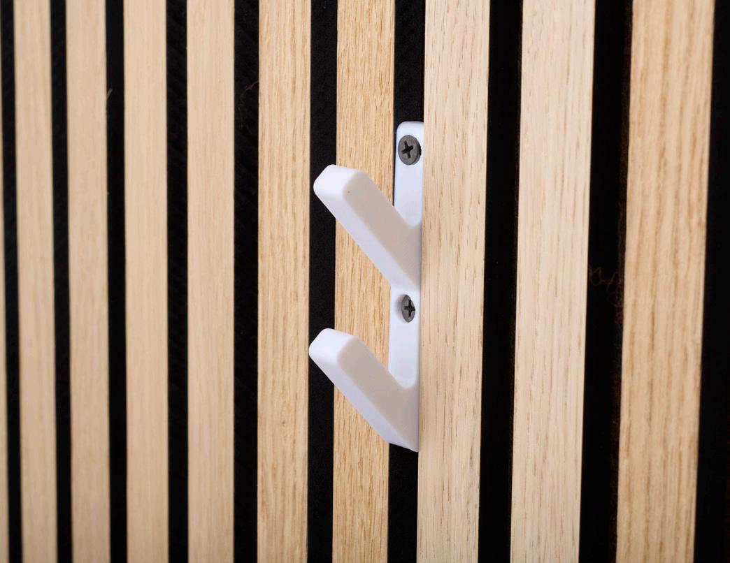 Optimiza tu solución de almacenamiento con nuestros ganchos 3D, diseñados especialmente para montaje vertical. Estos ganchos se pueden fijar fácilmente directamente sobre el fieltro entre las lamas, creando una solución funcional y elegante. No se incluyen tornillos.