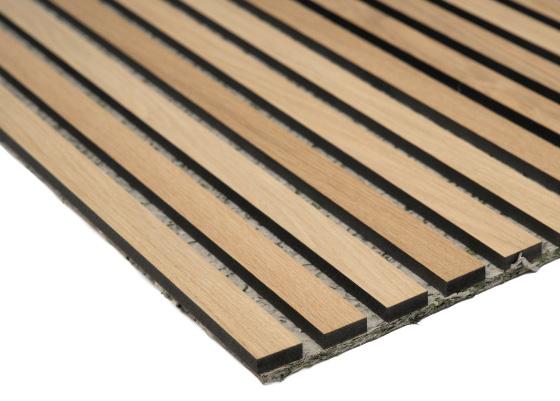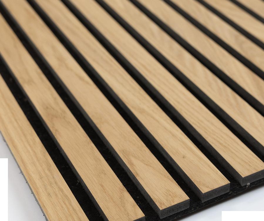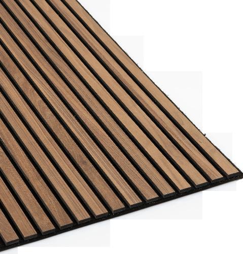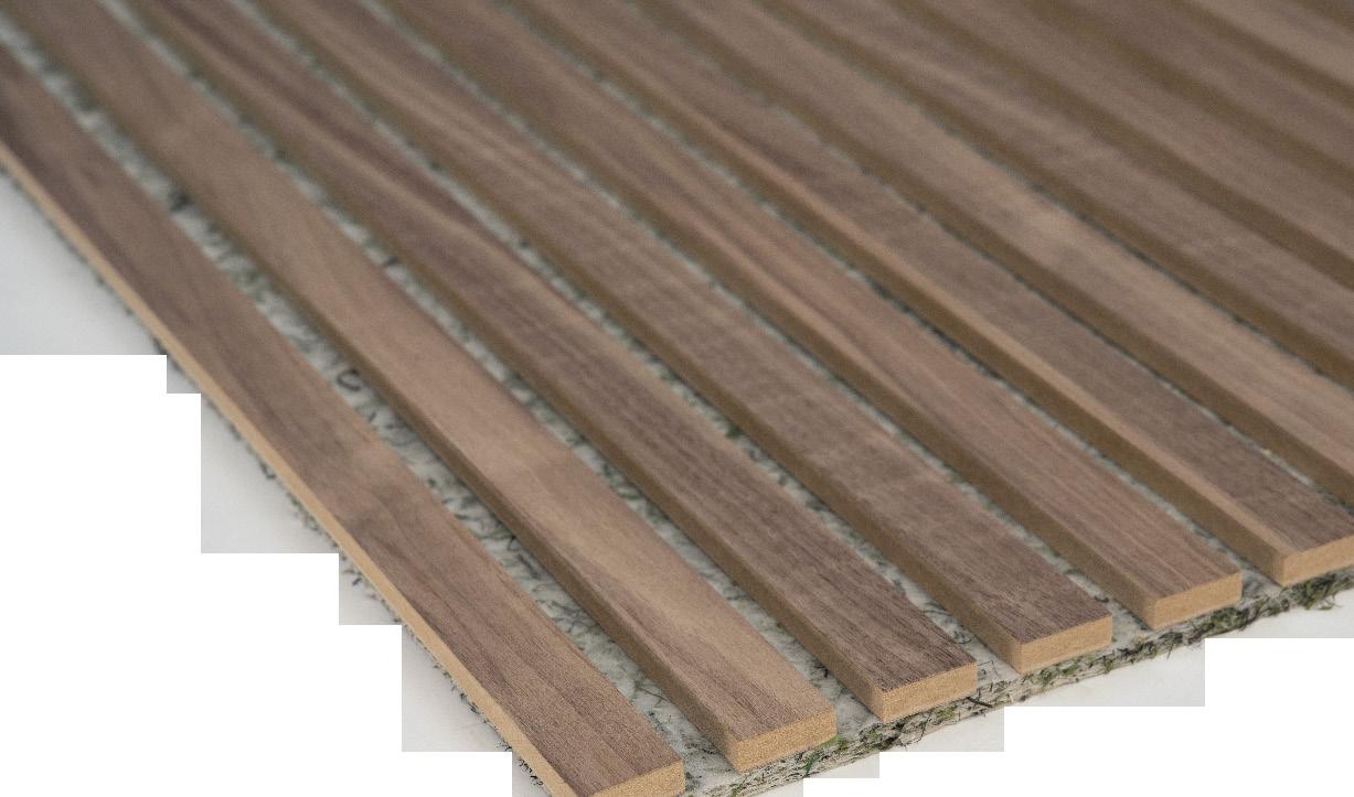 Nasze panele akustyczne są zwykle produkowane z filcem PET jako podkładem. Filc PET to zazwyczaj 50% nowego plastiku i 50% plastiku pochodzącego z recyklingu, nasze lamele są wykonane z płyty MDF lub sklejki, na którą naklejono z przodu prawdziwy fornir. Oznacza to, że mogą wystąpić niuanse w wyglądzie forniru.