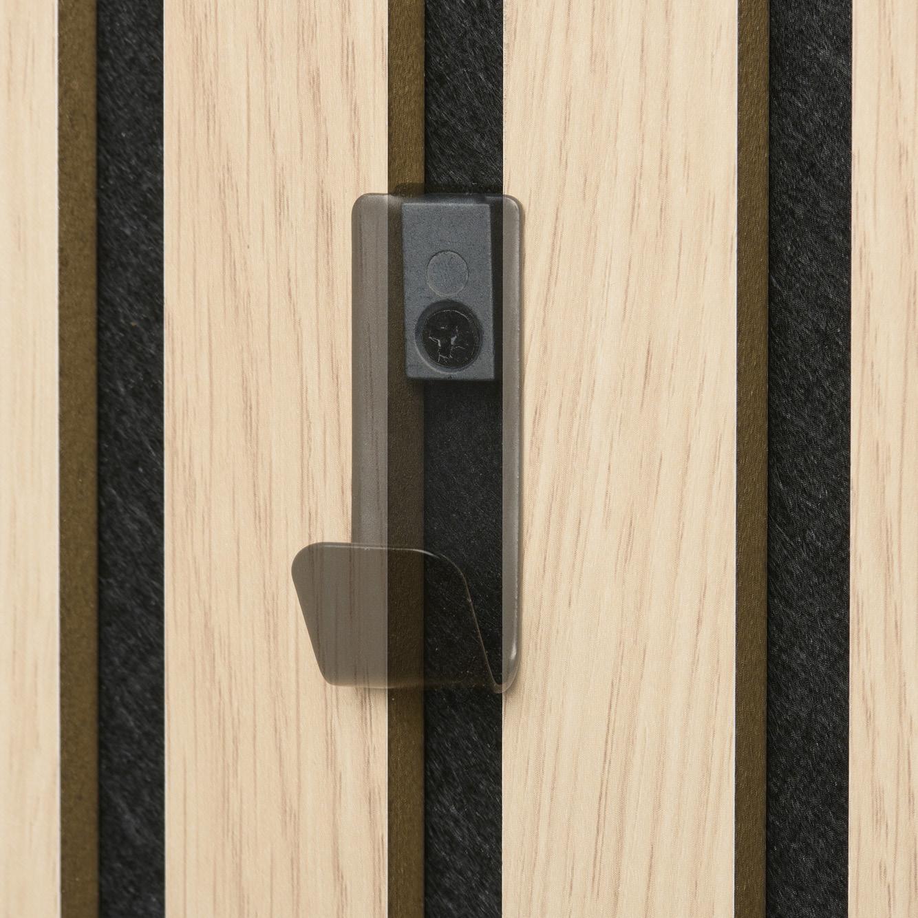 Ulepsz swoje rozwiązanie do przechowywania dzięki naszym haczykom 3D, zaprojektowanym specjalnie do montażu pionowego. Haczyki można łatwo przymocować bezpośrednio do filcu między listewkami, tworząc stylowe i funkcjonalne miejsce do przechowywania. Śruby nie są dołączone.