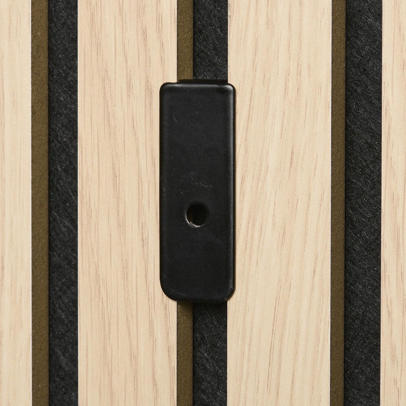 Matowy czarny uniwersalny schowek do paneli akustycznych montowanych poziomo lub pionowo.