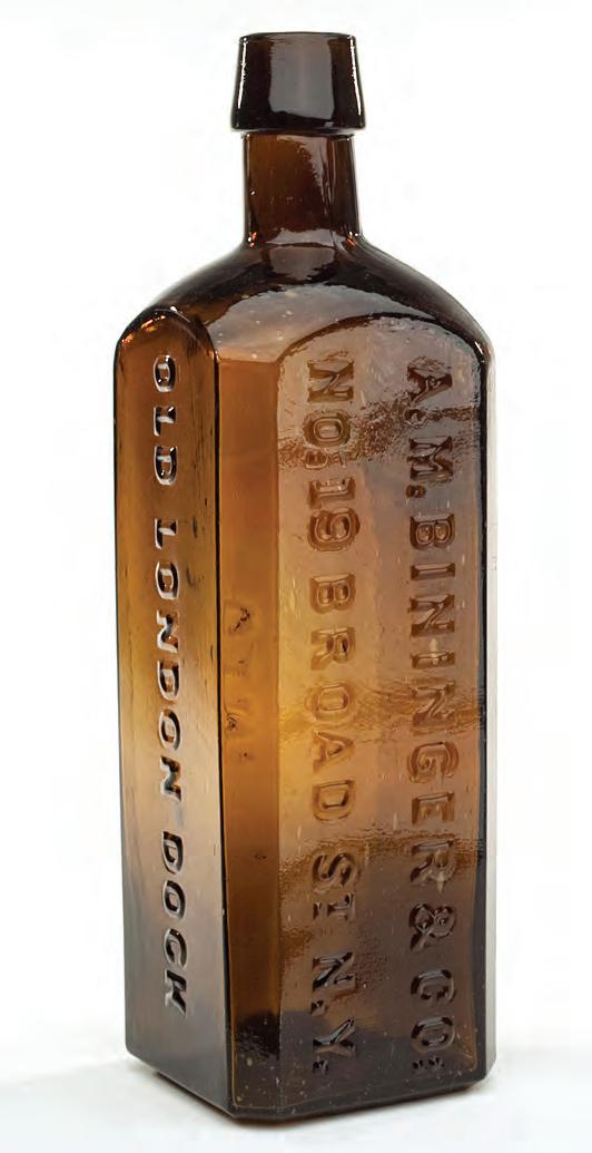 Perhaps due to these and/or other troubles, newspaper notices concerning A.M. Bininger seem to shift around this time (1857-1858) from banking and insurance to liquor production and supply, coincident with a change in address from 329 Greenwich to 17 Broad Street. In the July 10, 1858 edition of the Buffalo Daily Republic, an advertisement appeared promoting Bininger’s Old London Dock Gin, A.M. Bininger & Co., Importers, No. 17 Broad Street, New York, where the gin was, of course, marketed as a safe and reliable medicine for family use. The notice, translated from old English, states in part: “The Public are assured that our London Dock Gin is a superior article, possessing all the virtues ascribed to it as a Medicinal Beverage, and deserving of their patronage, in preference to the suspicious decoctions emanating from irresponsible sources, and sold under various pretentious names… Put up in quart and pint bottles, in cases of one and two dozen each, with our name on the bottles, and a facsimile of our Signature on the wrappers.”