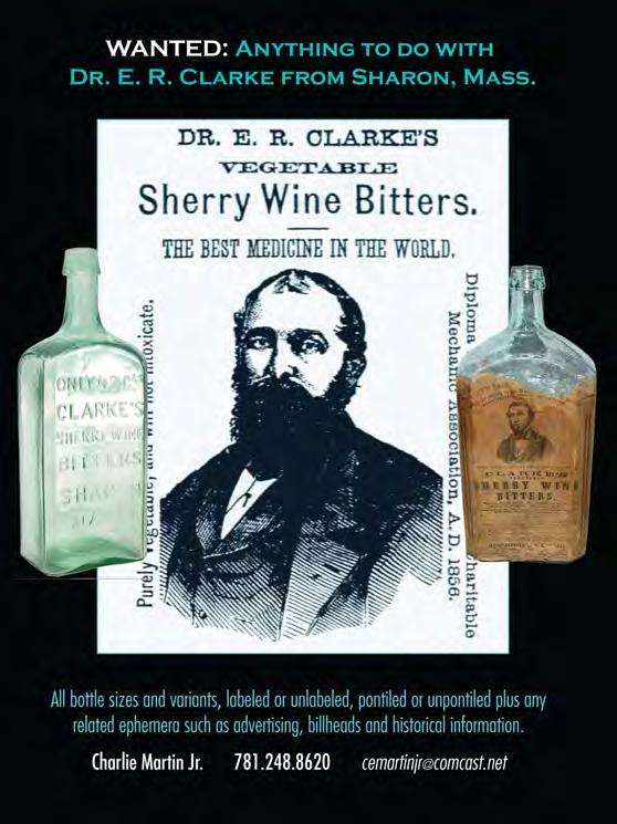 1) Almanac images courtesy of Bill Ham & Ferdinand Meyer V from Bitters Bottles Supplement 2, primarily ex Dan Cowman collection. 2) Postal Cover images courtesy of Bill Ham & Ferdinand Meyer V from Bitters Bottles Supplement 2, Ben Swanson collection. 3) Select ephemera from the Joe Gourd and Ferdinand Meyer V collections. 4) Label images courtesy of Bill Ham & Ferdinand Meyer V from Bitters Bottles Supplement 2, anonymous. 5) FOHBC 2016 Sacramento National Shootout images from FOHBC archives. 6) Base embossings images courtesy of Norman C. Heckler & Co. 7) Three green Hostetter’s Stomach Bitters image courtesy American Glass Gallery, John Pastor. 8) Hostetter’s Stomach Bitters framed advertising signs courtesy Ferdinand Meyer V collection.