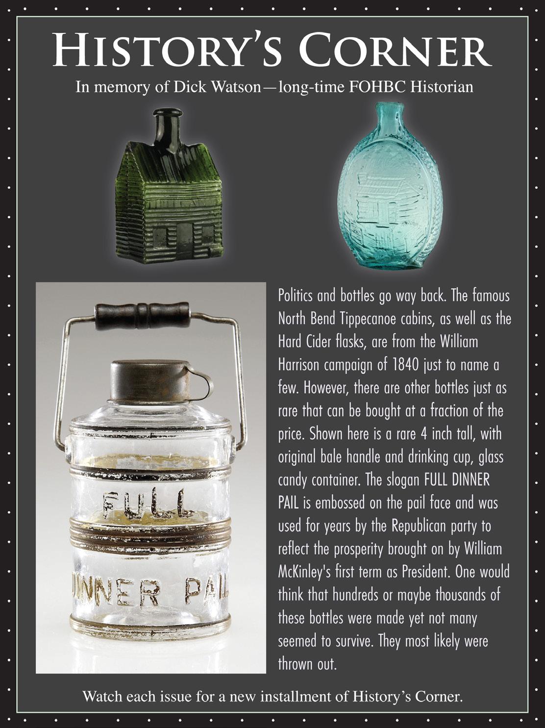 The Federation of Historical Bottle Collectors is a non-profit organization for collectors of historical bottles, glass and related collectible items. Our primary goal is educational as it relates to the history and manufacture of historical bottles and related artifacts.
