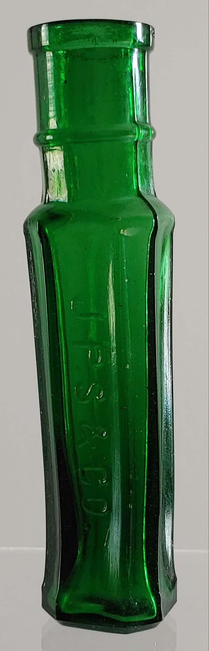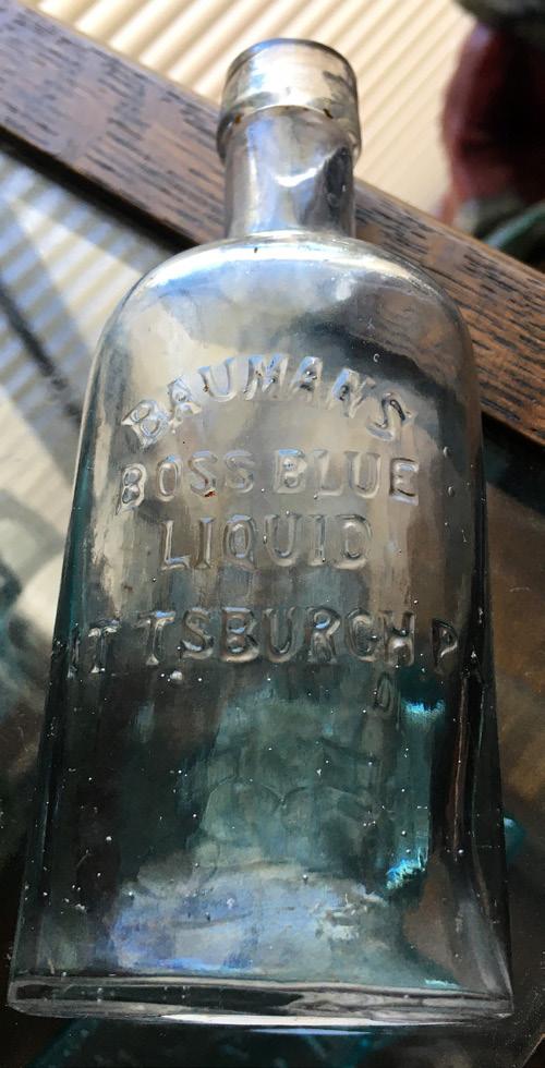 Now, back to the bottle in question: Here is what the faded label says (as best I can tell): “Finch’s ‘Good Samaritan Pain Killer’ Liniment—Directions. For cholic—morbus—1/2 teaspoonful on—(several lines unreadable) until relieved. For rheumatism apply with the hand rubbing in thoroughly / Shake before using. Price 50 cts.” I tried to research the product, but after an hour, this Finch was a pain! I found nothing.