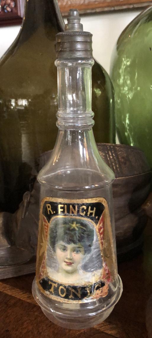 It reminds me of the time 30 years ago—when Jim Hagenbuch called up and alerted me to an item coming up in one of his auctions. He said: “It’s you! I mean, it’s got your name on it!” In fact, it did: A barber bottle embossed “R. Finch. Tonic.” [Photo B]