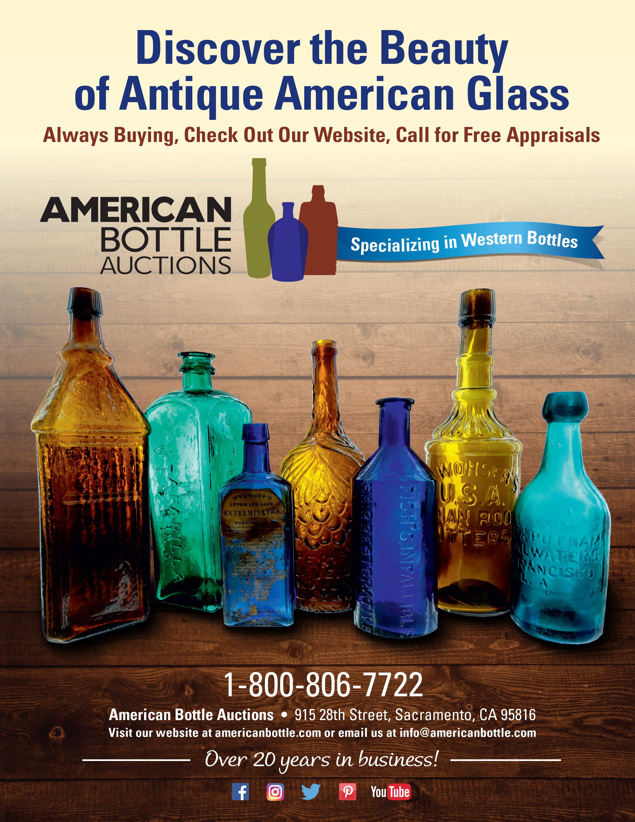 Free advertising of “For Sale” items in Antique Bottle & Glass Collector (restrictions apply—ads may be up to 100 words, items must be of $25 or greater value, and free advertisements are limited to the first received. One free ad of 60 words each year for use for items such as For Sale and Wanted, trade offers, etc.