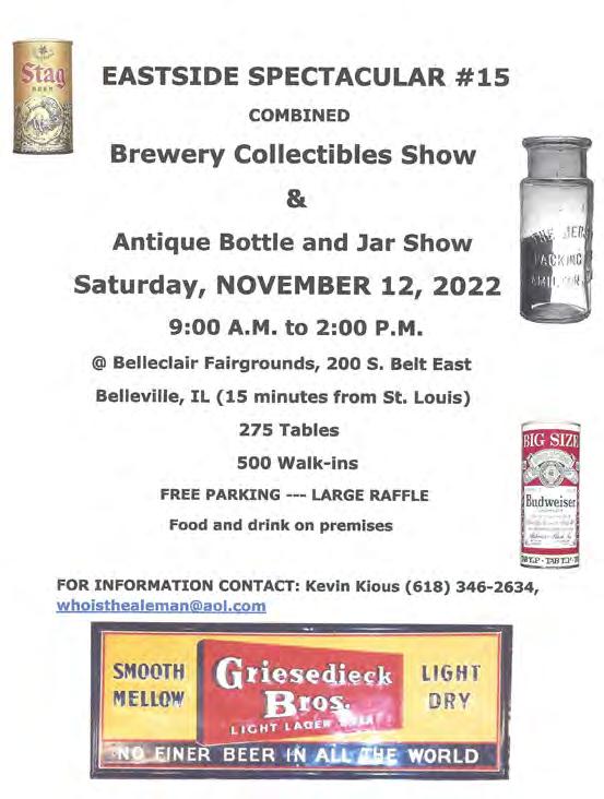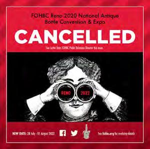 The Reno Convention was well-attended, and the displays were fantastic. The S.S. Central America exhibit brought in a lot of non-bottle collectors so we had a lot of “new” people milling about the show asking about the hobby. Richard Siri and his team did a fantastic job of organizing the show and Gina Pellegrini-Ott, our photographer, captured many wonderful moments throughout the weekend which you will see in this issue. There are many people to thank for the success of the show so take special note of those who are listed throughout the special Reno 2022 section. It almost goes without saying but, once again, Ferd Meyer unselfishly do nated countless hours to the design and planning of every poster, ad, souvenir program; (sold out all ad space) and event coordina tion. I thank each and every one of you who helped in any way.