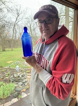 Alan Blakeman holding the Goffe & Sons Birmingham cobalt blue codd bottle.