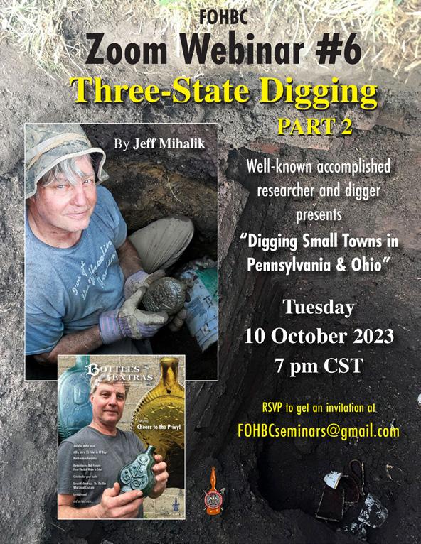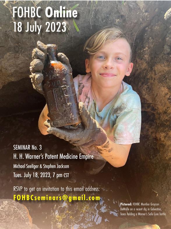 Affiliated Club Membership for only $75 with liability insurance for all club-sponsored events, 50% discount on advertising in Antique Bottle & Glass Collector, plus so much more, Contact: FOHBC Business Manager: Elizabeth Meyer, PO Box 1825, Brookshire, Texas 77423, 713.504.0628, fohbcmembers@ gmail.com