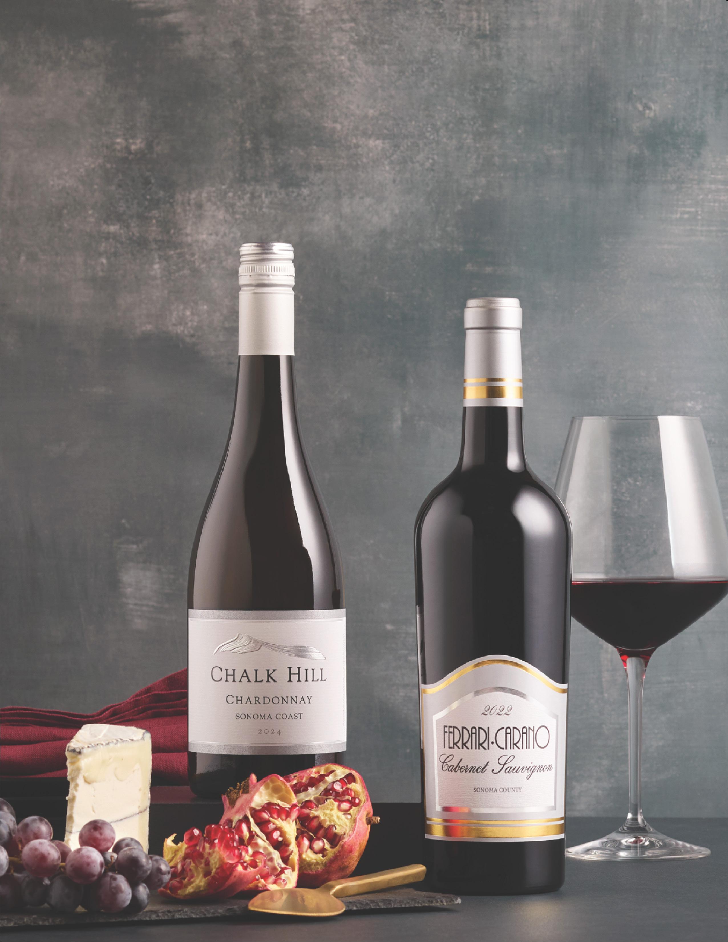 The perfect duo for any occasion—our elegant Chalk Hill Sonoma Coast Chardonnay and classic Ferrari-Carano Cabernet Sauvignon pair beautifully with any gathering. Timeless, versatile, and always welcome at the table.