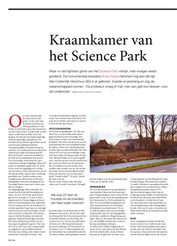 Kraamkamer van het Science Park Waar nu de hightech glorie van het Science Park verrijst, was vroeger weids grasland. De monumentale boerderij Anna Hoeve herinnert nog aan die tijd. Alie Oostenrijk-Verschuur (90) is er geboren, boerde er jarenlang en zag de wetenschappers komen. âDe professor vroeg of mijn man een geit kon leveren, voor zijn onderzoek.â Katja Kreukels / fotoâs Henk Thomas