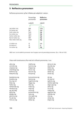 OBS! man är ett indefinit pronomen men fungerar som ett personligt pronomen. (Se s. 118 och 130.)