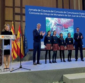 El trabajo realizado por las alumnas de 2º de ESO del colegio Sansueña de Zaragoza, María Ferrer, Paula Abad, Claudia Arroyo y Sofía Fañanás, les lleva hasta la final del Concurso “Proyecto Digital sobre San Juan de la Peña 2023-24”, logrando ser el tercer proyecto ganador. Pudieron presentarlo y defenderlo en la final convocada en el Salón de la Corona de la sede del Gobierno de Aragón.
