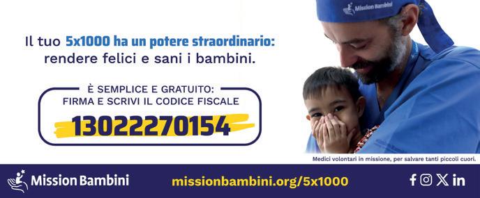 è con profonda gratitudine e rinnovato impegno che vi presento questo rapporto annuale, che testimonia l’instancabile lavoro della Fondazione Mission Bambini nel corso del 2024. Ogni pagina riflette la nostra dedizione nel garantire un futuro migliore ai bambini più vulnerabili, in Italia e nel mondo.