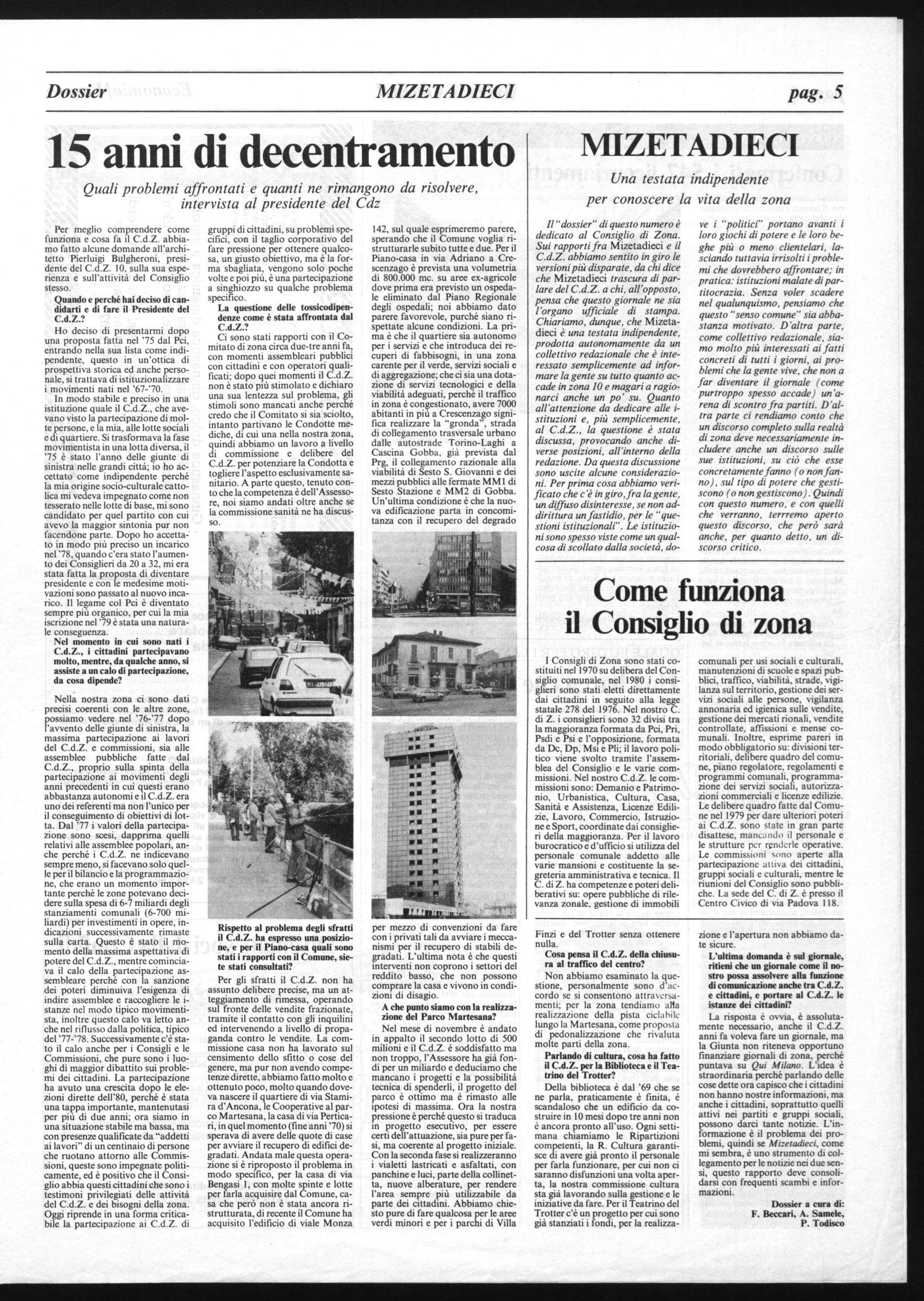 Per Mizetadieci si conclude il primo anno di lavoro. Sette numeri pieni di notizie, di fatti, di critiche e di proposte hanno iniziato a "fotografare" la vita di questi quartieri.