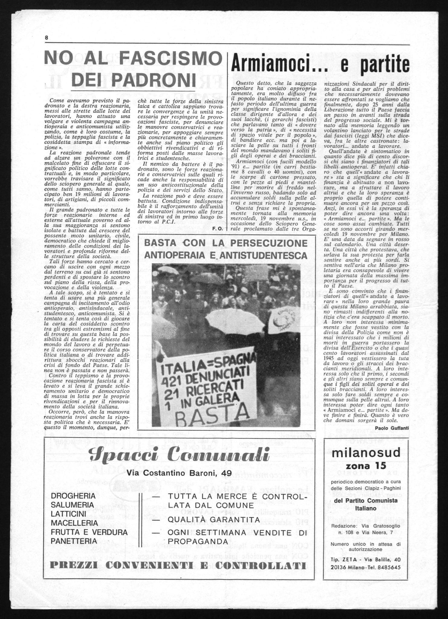 Il giornale, tuttavia, costa ai compagni della redazione e alle sezioni « Clapiz e Paghini » impegni finanziari molto pesanti ed a volte insostenibili.