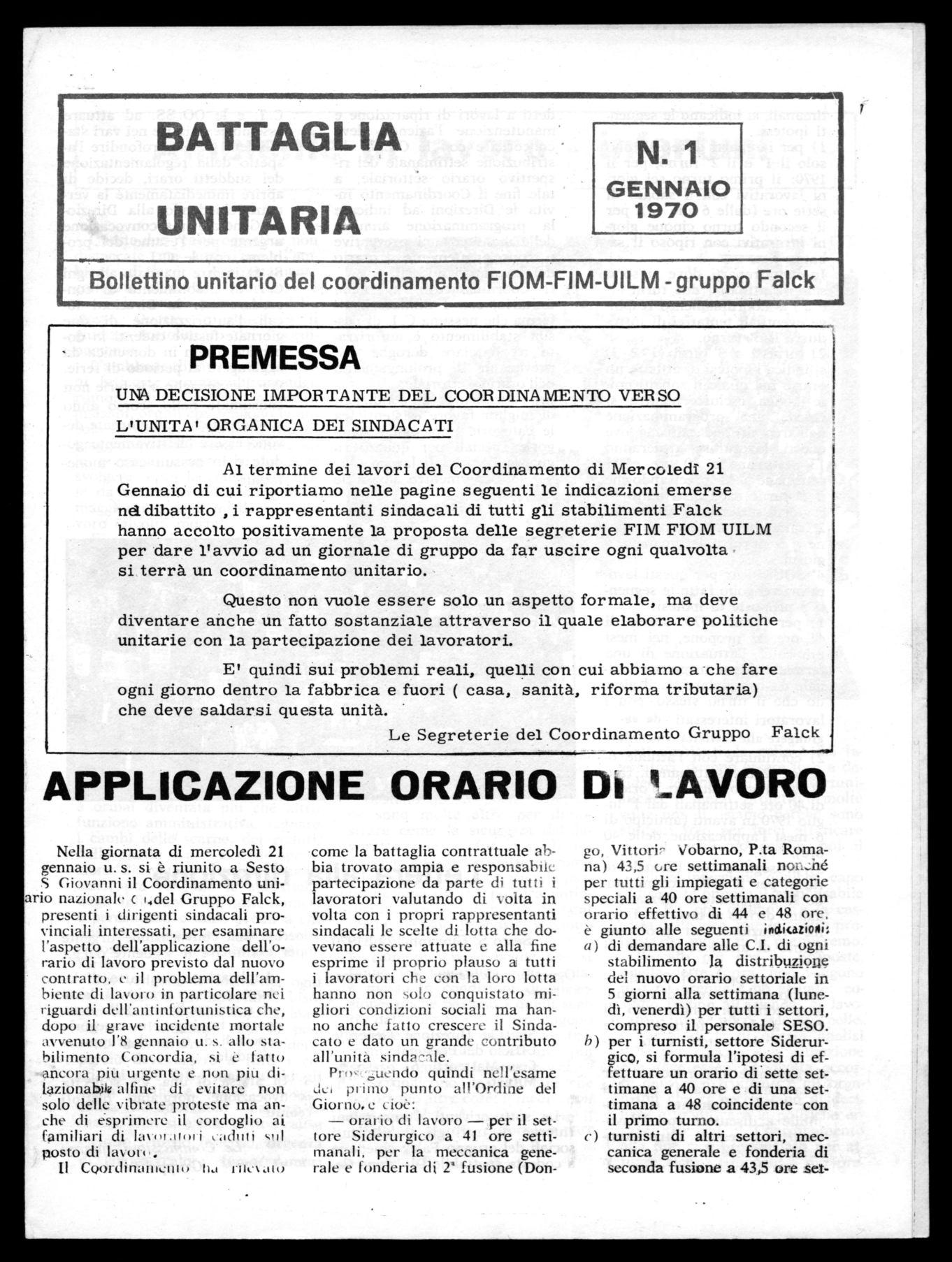 Al termine dei lavori del Coordinamento di Mercoledì 21 Gennaio di cui riportiamo nelle pagine seguenti le indicazioni emerse nel dibattito , i rappresentanti sindacali di tutti gli stabilimenti Falck hanno accolto positivamente la proposta delle segreterie FIM FIOM UILM per dare l'avvio ad un giornale di gruppo da far uscire ogni qualvolta si terrà un coordinamento unitario.