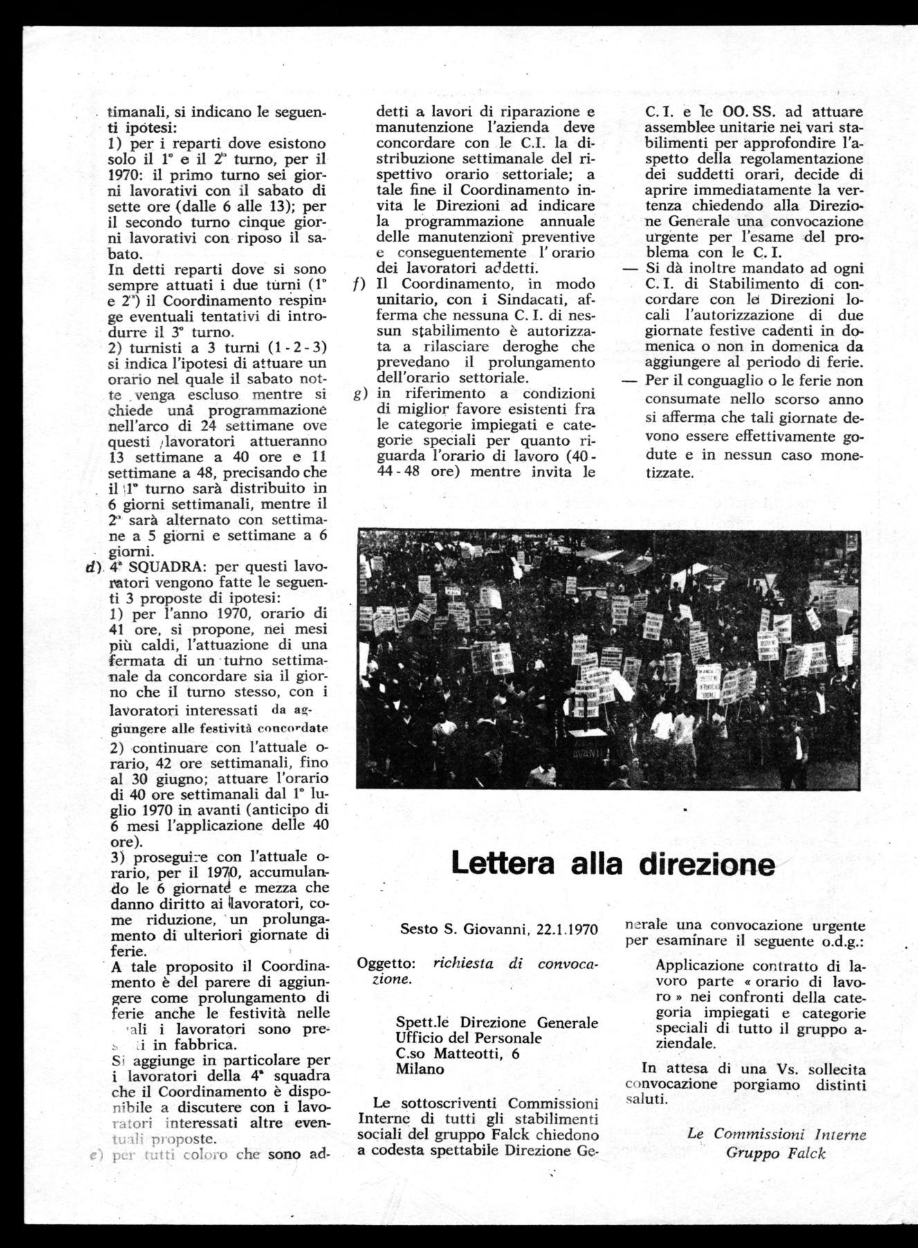 Le sottoscriventi Commissioni Interne di tutti gli stabilimenti sociali del gruppo Falck chiedono a codesta spettabile Direzione Ge-