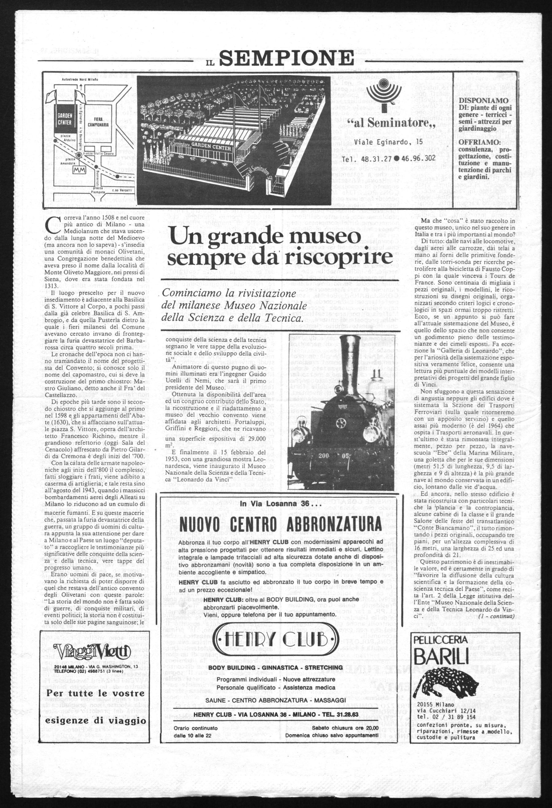 IL SEMPION£ esce tutti i mesi tranne gennaio, luglio e agosto. Una copia fuori abbonamento £.2.000.