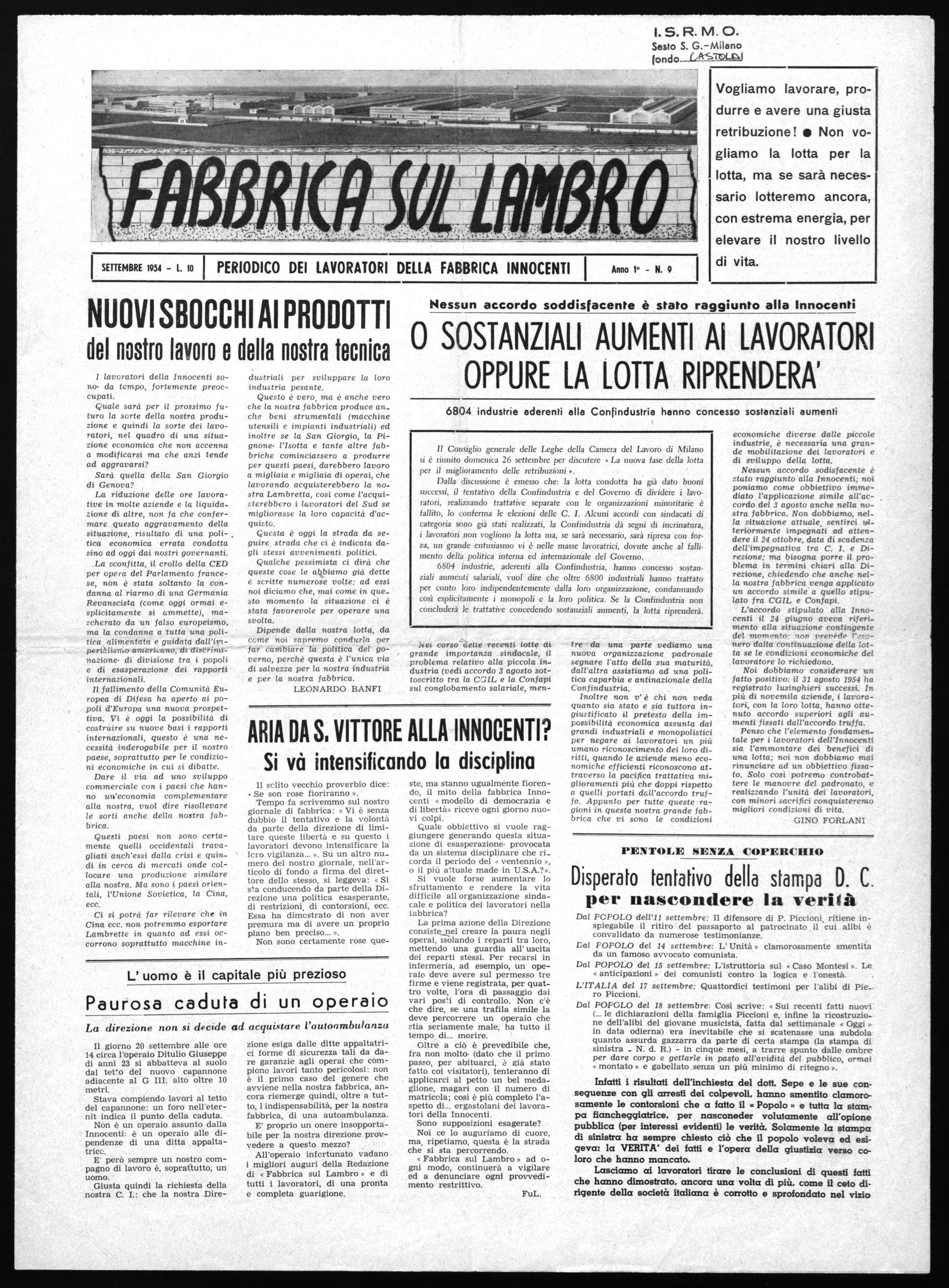 I SETTEMBRE 1954 - i.. io I PERIODICO DEI LAVORATORI DELLA FABBRICA INNOCENTI I Anno 10 - N. 9