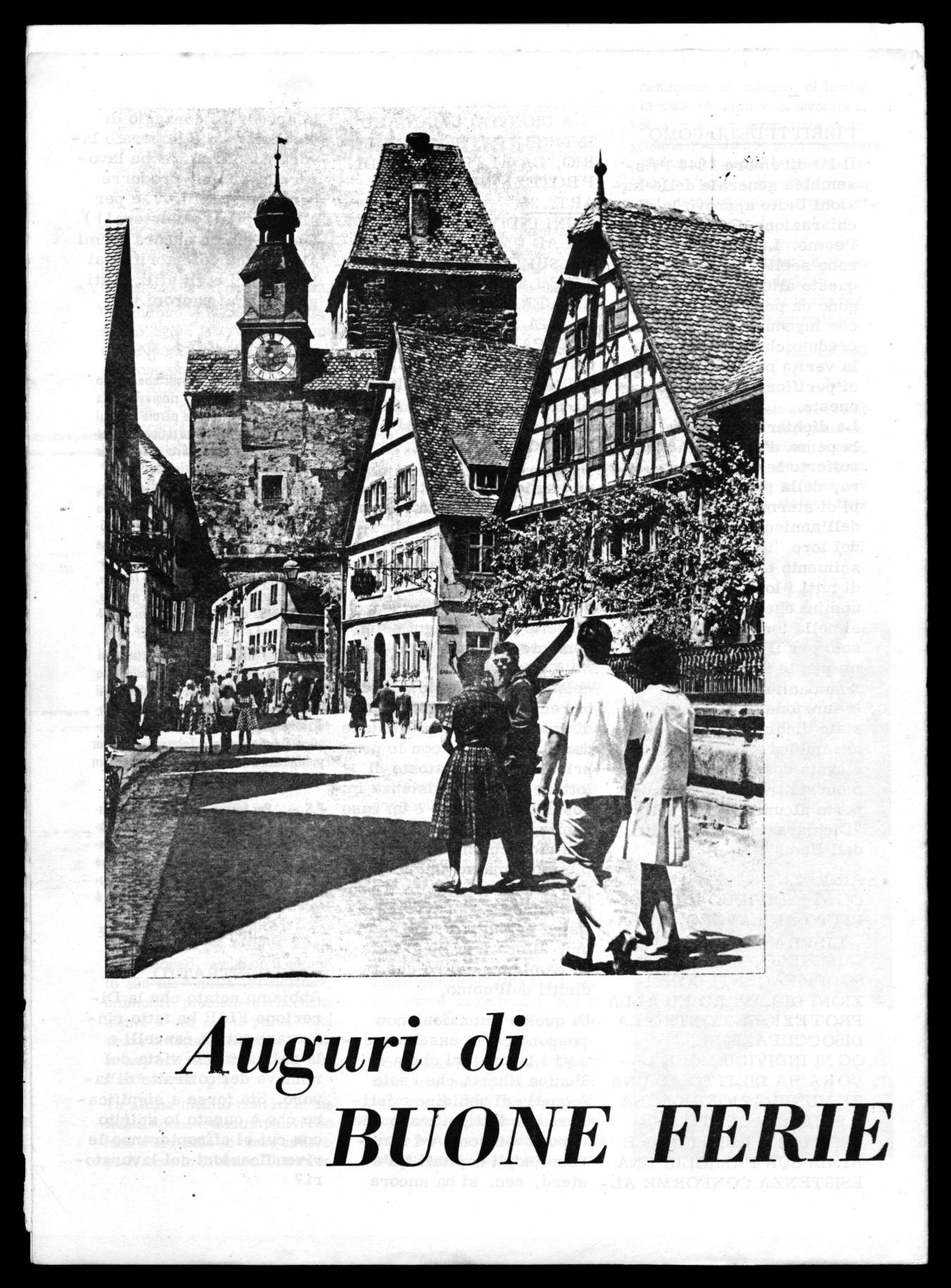 Interessantissimi poi i consigli per chi si reca in vacanza all'estero o a compiere escursioni in tetescafo, recentemente inaugurato, sulla Costa Azzurra. (quest'ultimo passatempo è particolarmente consigliabile per i manovali specializzati).
