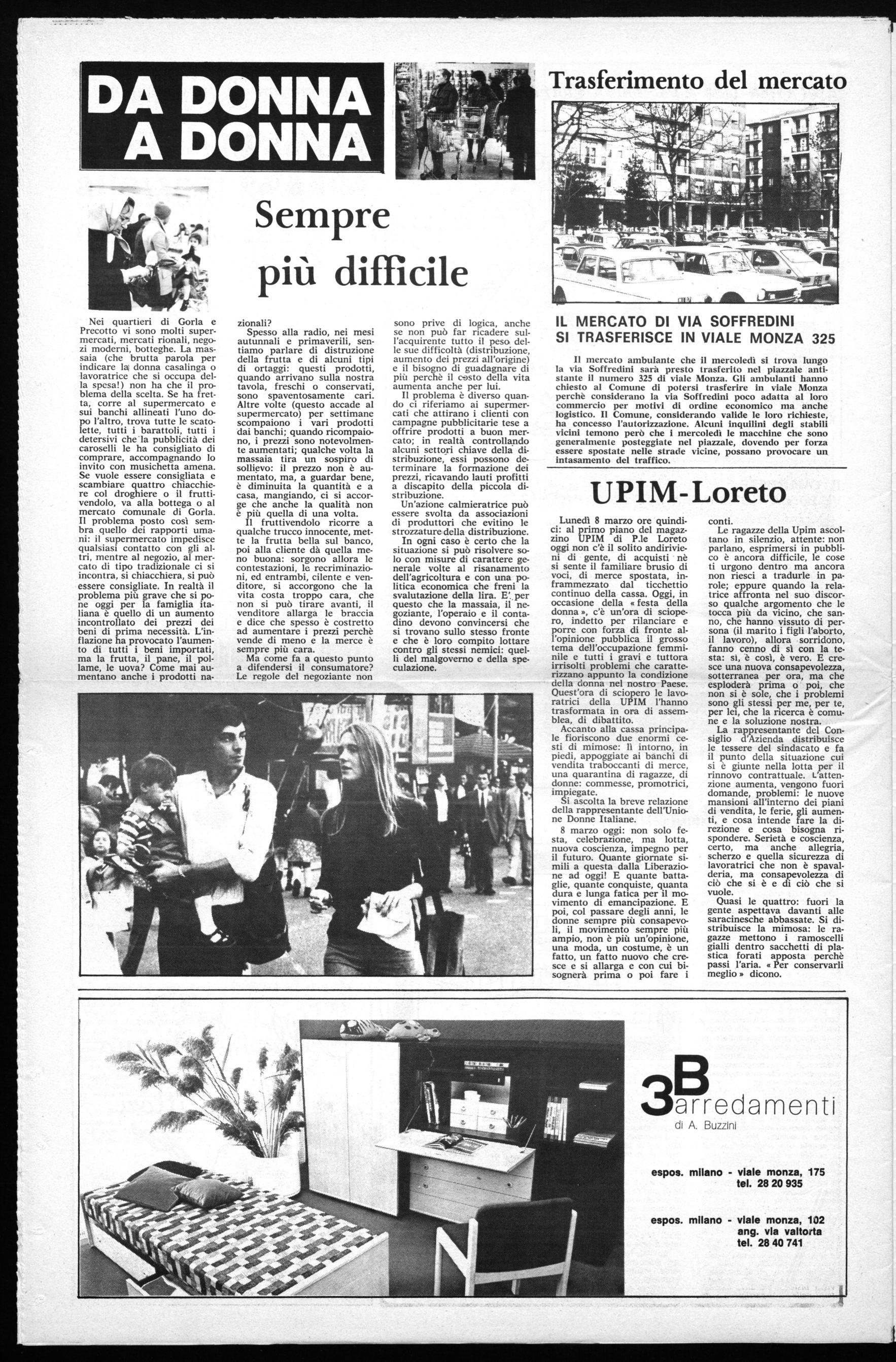 Le ragazze della Upim ascoltano in silenzio, attente: non parlano, esprimersi in pubblico è ancora difficile, le cose ti urgono dentro ma ancora non riesci a tradurle in parole; eppure quando la relatrice affronta nel suo discorso qualche argomento che le tocca più da vicino, che sanno, che hanno vissuto di persona (il marito i figli l'aborto, il lavoro), allora sorridono, fanno cenno di sì con la testa: si, è così, è vero. E cresce una nuova consapevolezza, sotterranea per ora, ma che esploderà prima o poi, che non si è sole, che i problemi sono gli stessi per me, per te, per lei, che la ricerca è comune e la soluzione nostra.