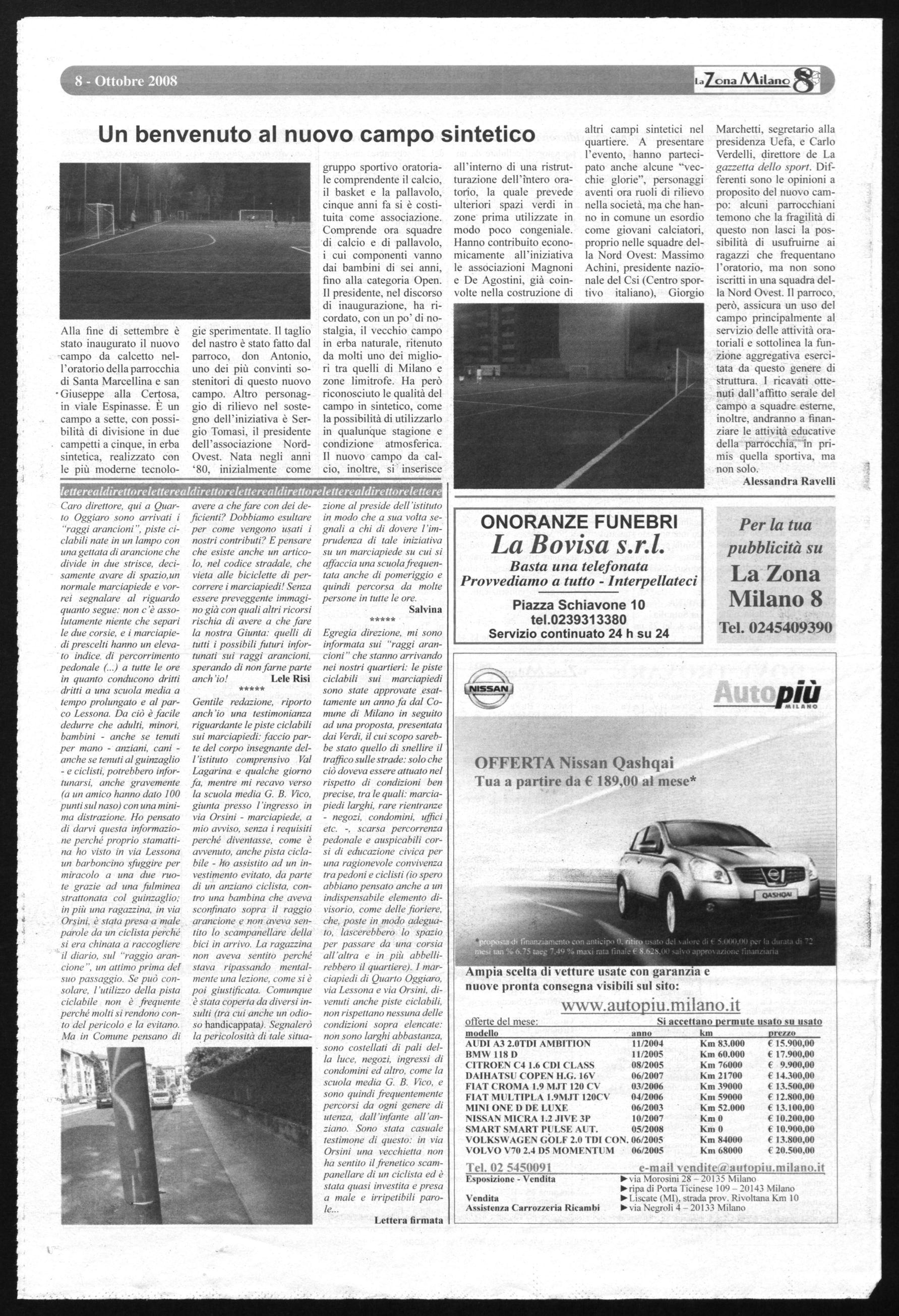 Alla fine di settembre è stato inaugurato il nuovo -campo da calcetto nell'oratorio della parrocchia di Santa Marcellina e san Giuseppe alla Certosa, in viale Espinasse. È un campo a sette, con possibilità di divisione in due campetti a cinque, in erba sintetica, realizzato con le più moderne tecnolo-