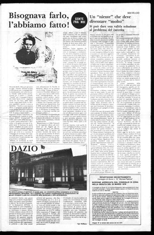 E non è per caso che proprio nelle zone popolari di Milano abbiano avuto un qualche successo i mercatini rossi organizzati dalla sinistra extraparlamentare. Anche la .nostra zona ha avuto l'onore, per ben due sabato-mattine, di ospitare tali "vendite alternative". Al di là di ogni polemica e di ogni valutazione politica, bisogna riconoscere che queste iniziative, se pur provvisorie e di scarso respiro, hanno attirato l'attenzione un po' di tutti sul grave problema del caro vita, l'hanno, se così ci si può esprimere, fatto esplodere, almeno qui a Milano. Qualcuno forse potrebbe chiedersi come una grande organizzazione come la federazione unitaria C.G.I.L. C.I.S.L. U.I.L. si sia fatta scappare questa bellissima idea, che, a sentir qualcuno, ha avuto tanto successo. Mah, forse perchè illudere la gente non è costume dell'organizzazione sindacale che difende i diritti dei lavoratori. La lotta alla intermediazione parassitaria non va avanti con qualche bancarella davanti ai supermercati. Ma è necessario creare le condizioni per cui gli Enti Locali e le stesse partecipazioni statali possano realmente controllare il settore del mercato all'ingrosso, che oggi è in mano a grandi gruppi finanziari che