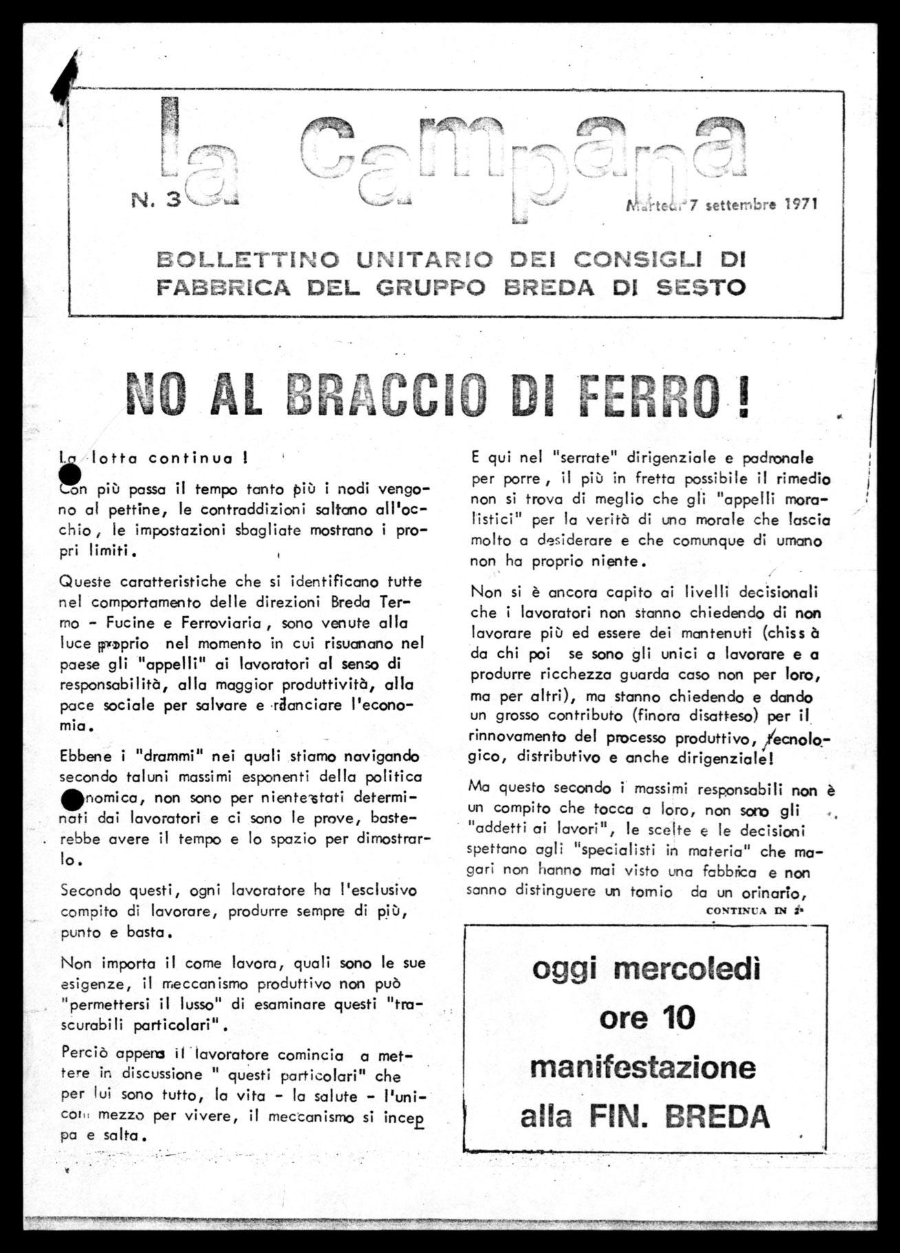 una manifestazione all'interno della Breda. Il comizio si era concluso con un impegno preciso, un appuntamento per giovedì, 26 agosto, per continuare una battaglia che solo l'atteggiamento della di-