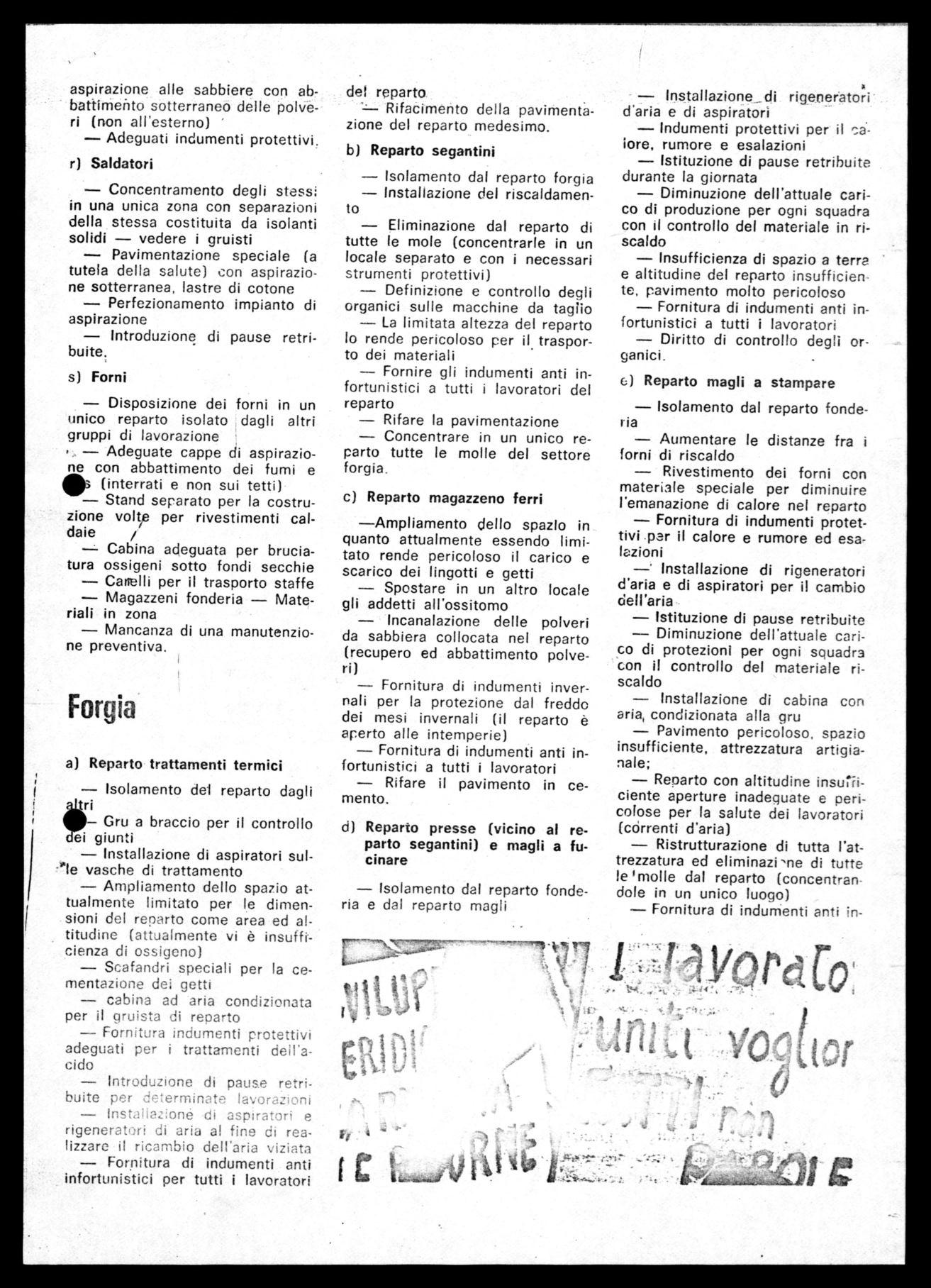 Le richieste presentate, sono quindi, non punti calati dall'alto o akiaborati da un gruppo ristretto dì Wttivistí, ma frutto delle esigenze, problemi e volontà di tutti i lavo. ratori.