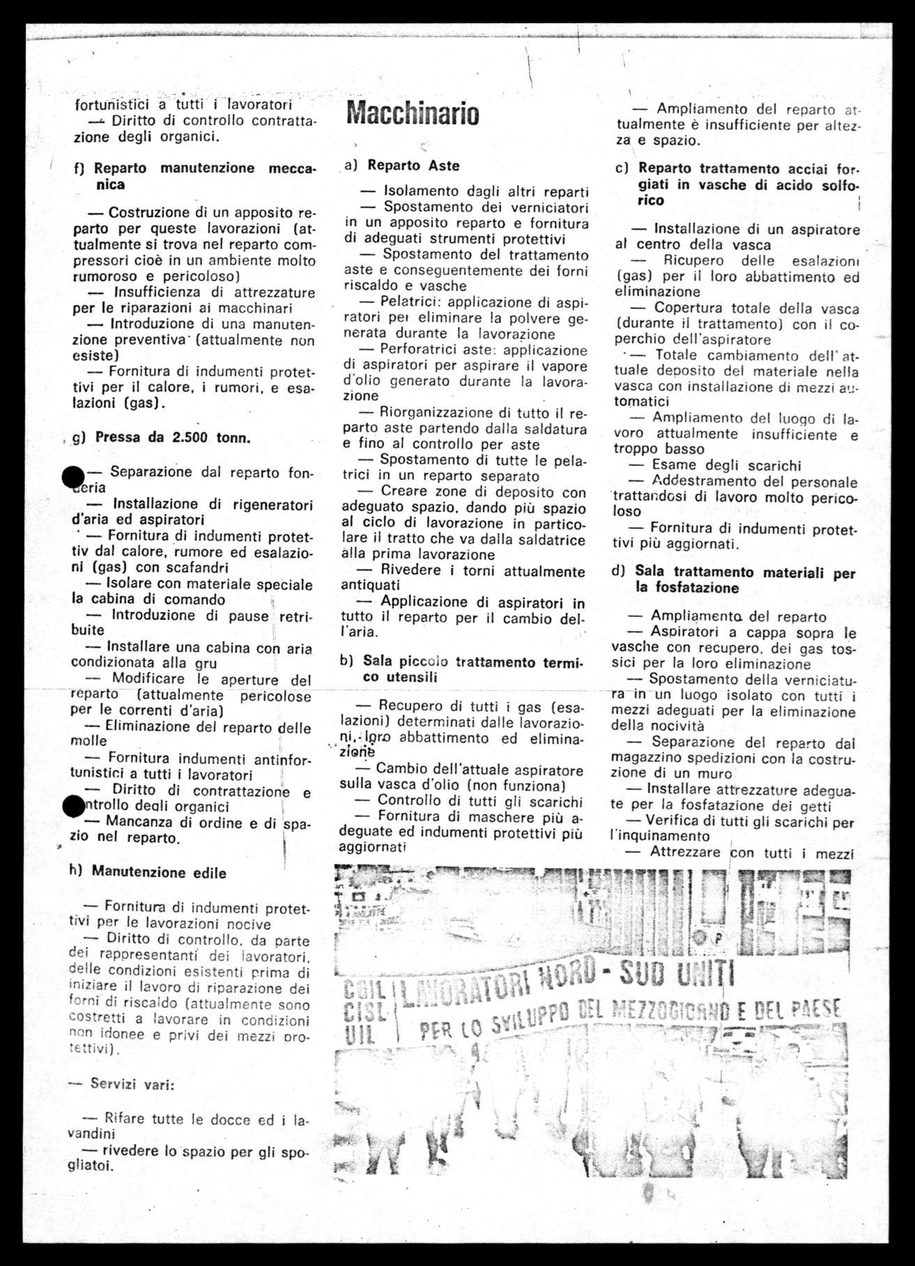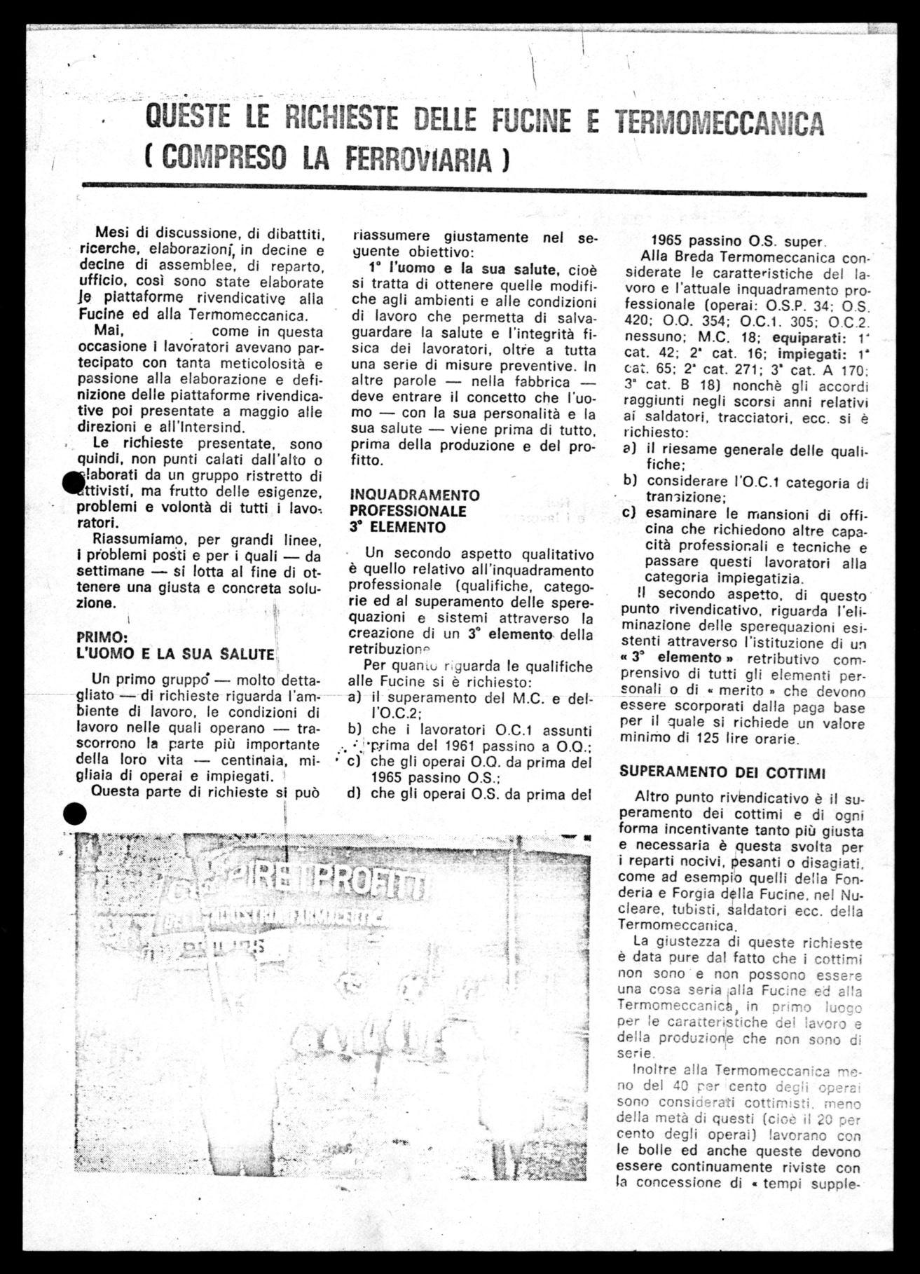 Altro punto rivendicativo è il superamento dei cottimi e di ogni forma incentivante tanto più giusta e necessaria è questa svolta per i reparti nocivi, pesanti o disagiati, come ad esempio quelli della Fonderia e Forgia della Fucine, nel Nucleare, tubisti, saldatori ecc. della Termomeccanica.