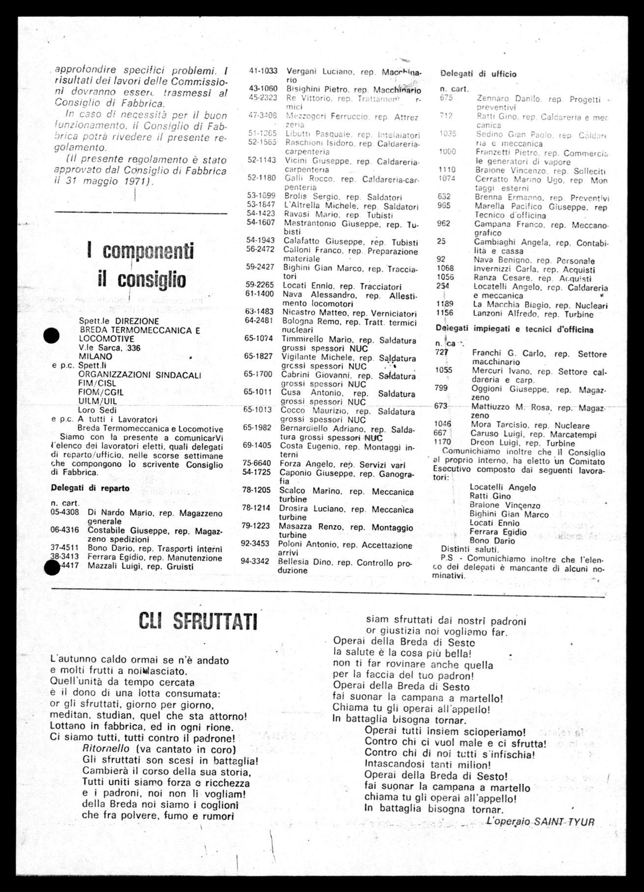 La grave decisione di chiudere la Ferroviaria Breda di Sesto S. Giovanni è stata presa del Ministero delle Partecipazioni statali e daill'aEF1M che così sopprimono TIV patrimonio di esperienza e di capacità professionali unici ín Italia per questo settore, e ciò malgrado le continue proposte e richieste di salvezza e rinnovamento tecnologico portate avanti dai sindacati con i lavoratori.