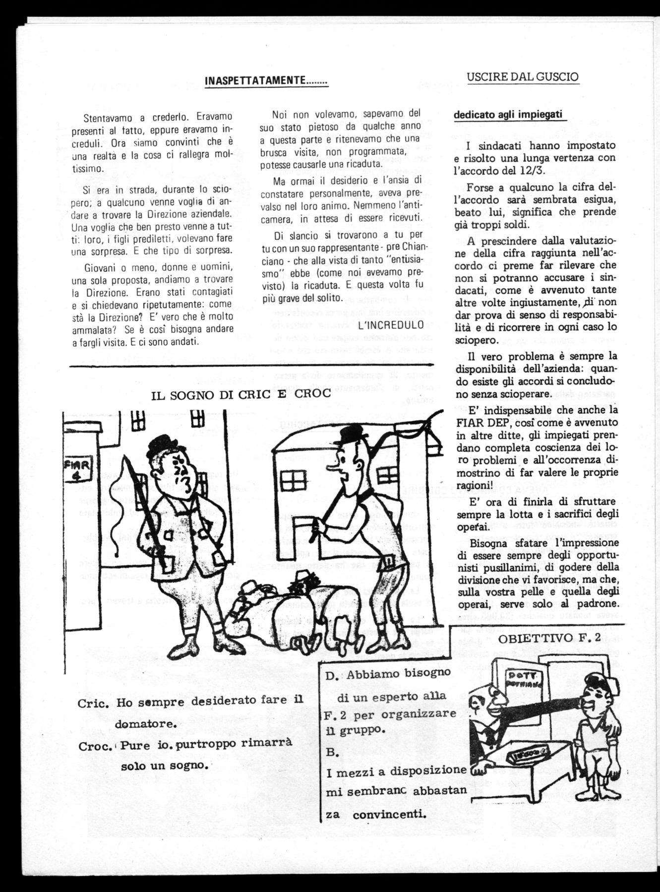 E' indispensabile che anche la FIAR DEP, cosi come è avvenuto in altre ditte, gli impiegati prendano completa coscienza dei loro problemi e all'occorrenza dimostrino di far valere le proprie ragioni!