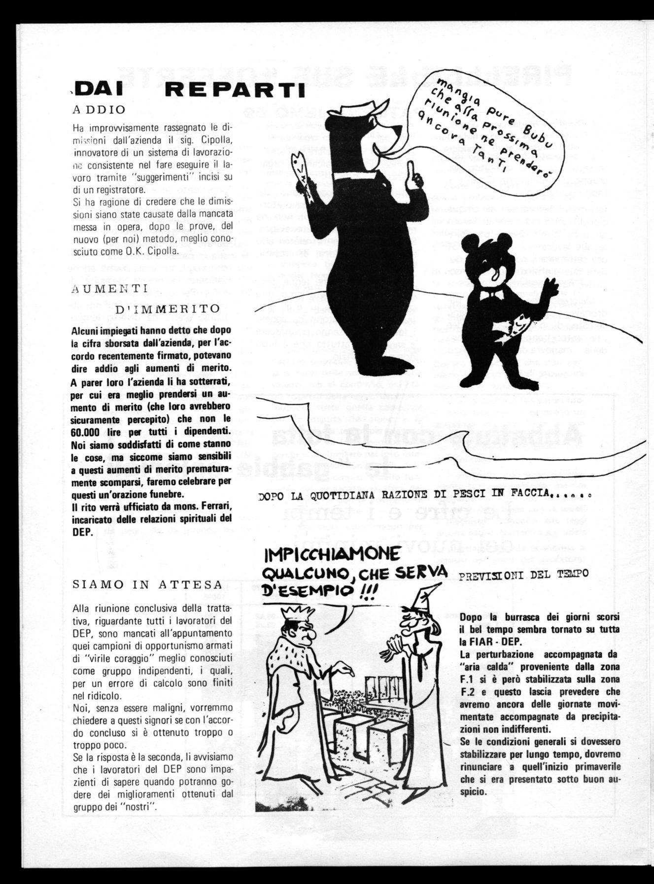 In una fabbrica qual'e la PIA R DEP, sia per le sue particolari carat teristiche, sia per la scarsa prese di coscienza e di sindacahzzazione, operai e Impiegati sono portati a credere, sia pure in buona fede, che gli scioperi vengano proclamati a ragione non veduta e quindi, secondo loro, cori poco senso di responsabilità da parte dei sindacati.