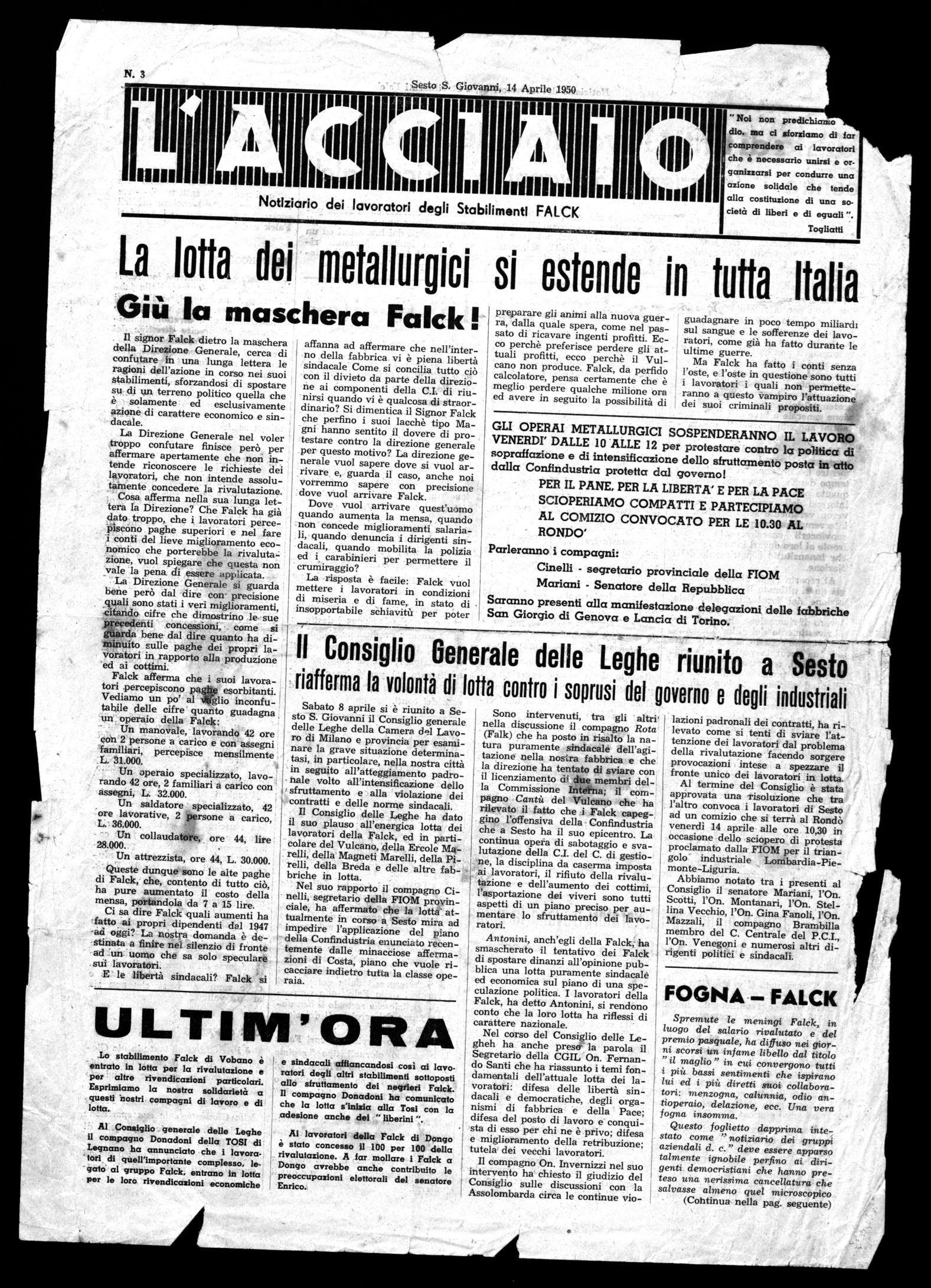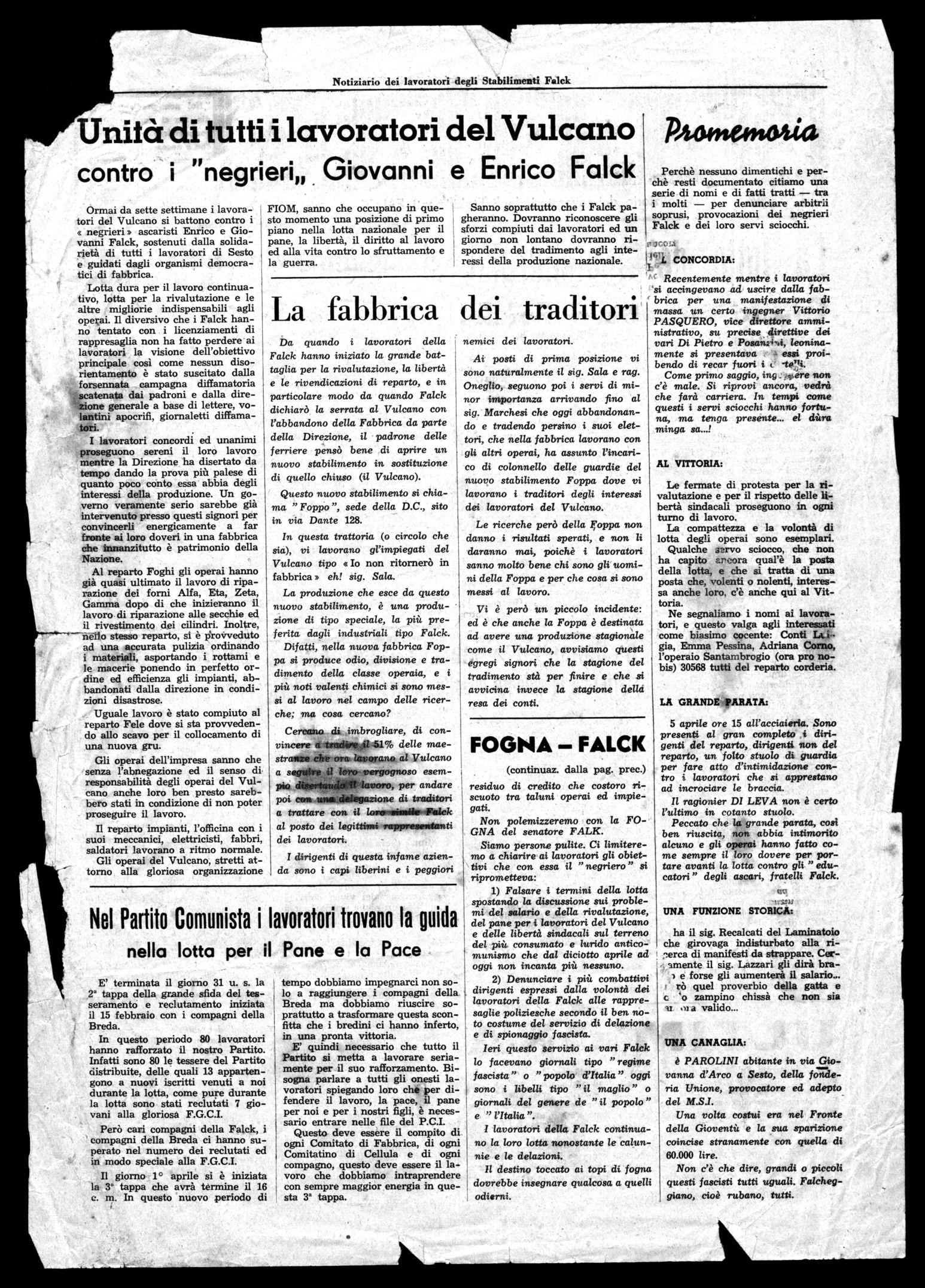 Sanno soprattutto che i Falck pagheranno. Dovranno riconoscere gli sforzi compiuti dai lavoratori ed un giorno non lontano dovranno rispondere del tradimento agli interessi della produzione nazionale.