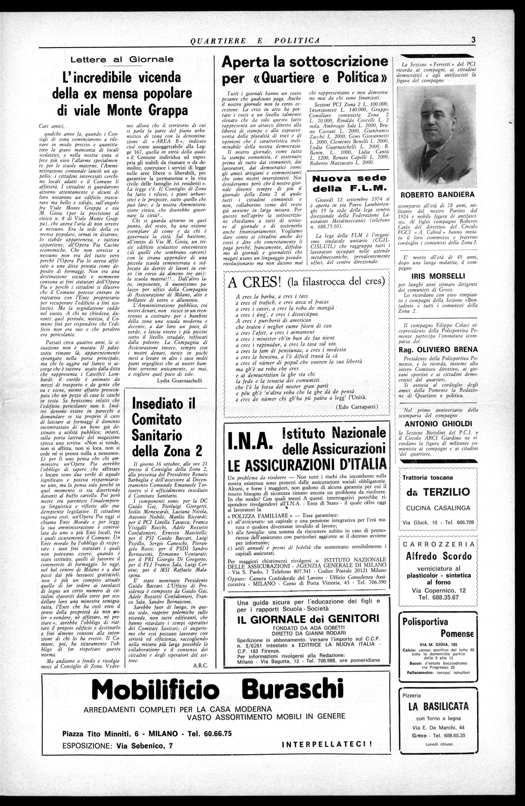 Giovedì 12 settembre 1974 si è aperta in via Porro Lambertenghi 19 la sede della lega centro direzionale della Federazione Lavoratori Metalmeccanici (telefono n. 688.75.10).