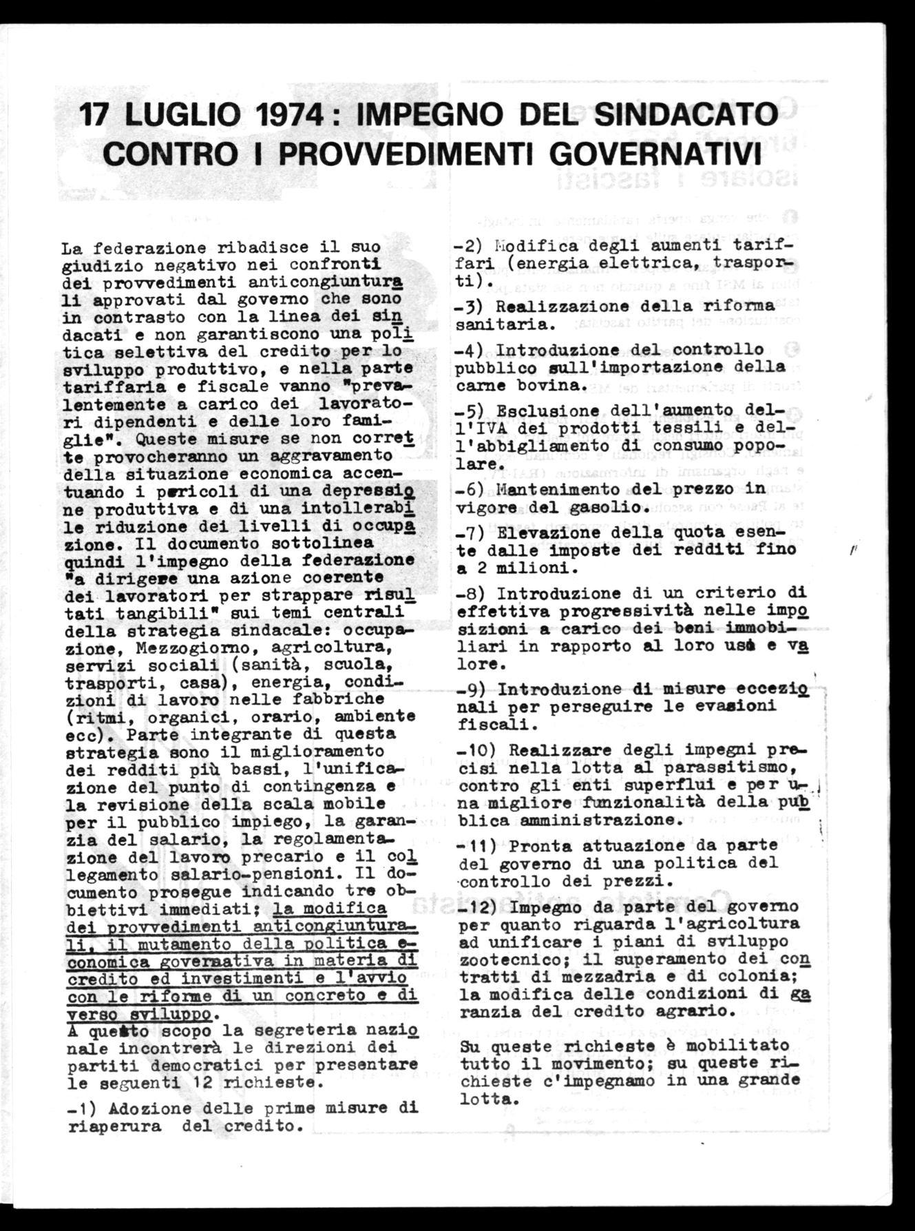 17 LUGLIO 1974: IMPEGNO DEL SINDACATO