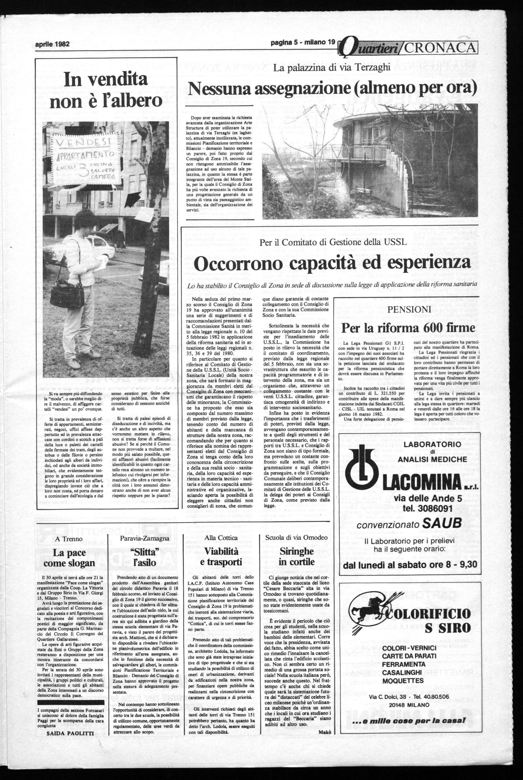 Sono un operatore geriatrico del Centro anziani di piazza Segesta 11, nel quale presto la mia attività come volontario fin dalla sua apertura. Le lotte che si sono fatte per ottenere questa palazzina sono state lunghe e dure. Dopo che la palazzina passò dalla ripartizione Scuola a quella dell'Assistenza sociale tutti assieme, Consiglio di Zona compreso, lottammo per la sua ristrutturazione. Invitammo assessori ed esperti comunali, si fece il progetto per la ristrutturazione e decidemmo, di comune accordo, che essa avrebbe dovuto tener conto, e questo lo sottolineavamo con forza, della necessità di dare spazio, nella palazzina, non soltanto agli anziani o altri servizi, ma anche agli handicappati. Si decise di fare servizi adeguati, scivoli per facilitare loro l'accesso con le carrozzine e, cosa indispensabile, di installare un montacarichi. Il tutto nell'ambito della ristrutturazione completa, compreso il piano interrato, con la rimessa a punto delle docce e dei bagni, oltre ad altri spazi per diversi usi, quali il parrucchiere (l'unico finora esistente) il falegname, l'idraulico, l'elettricista, ecc.