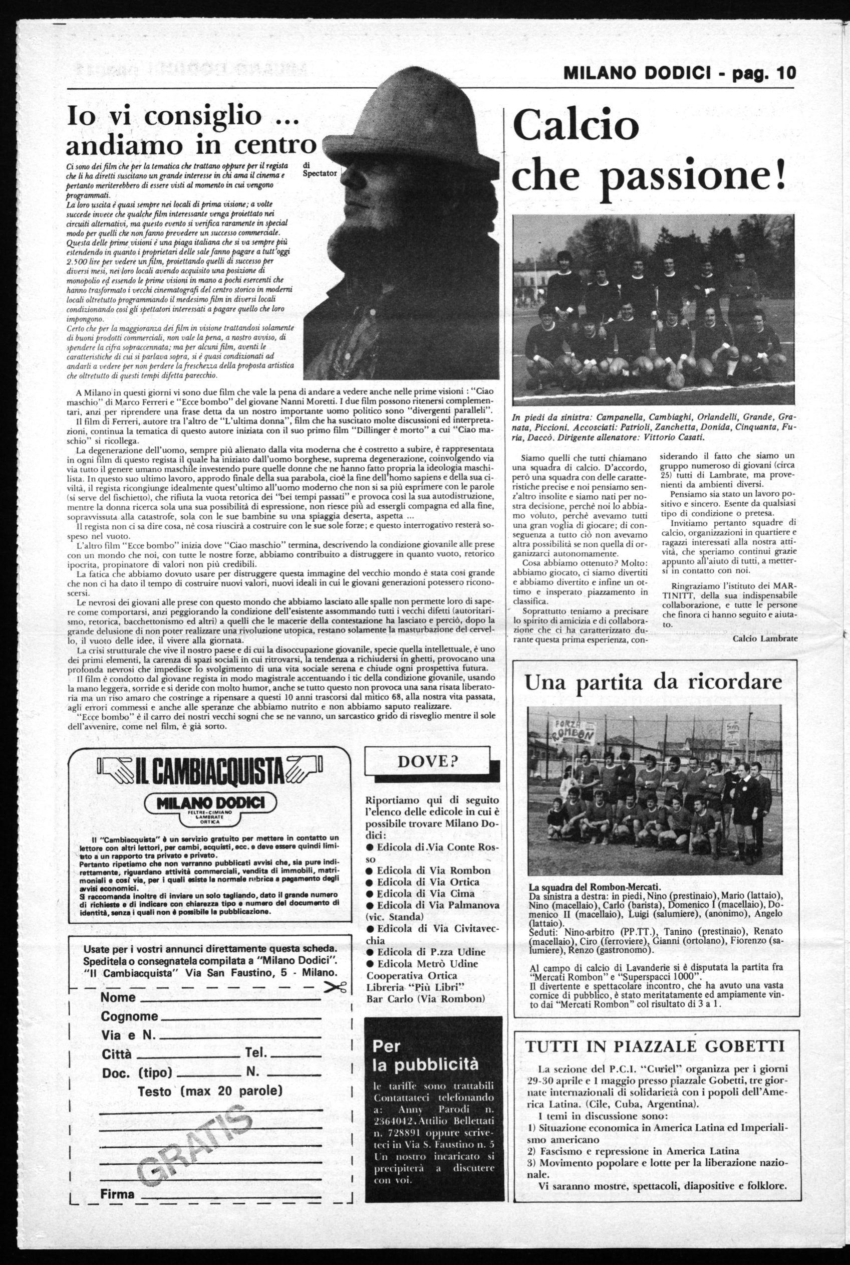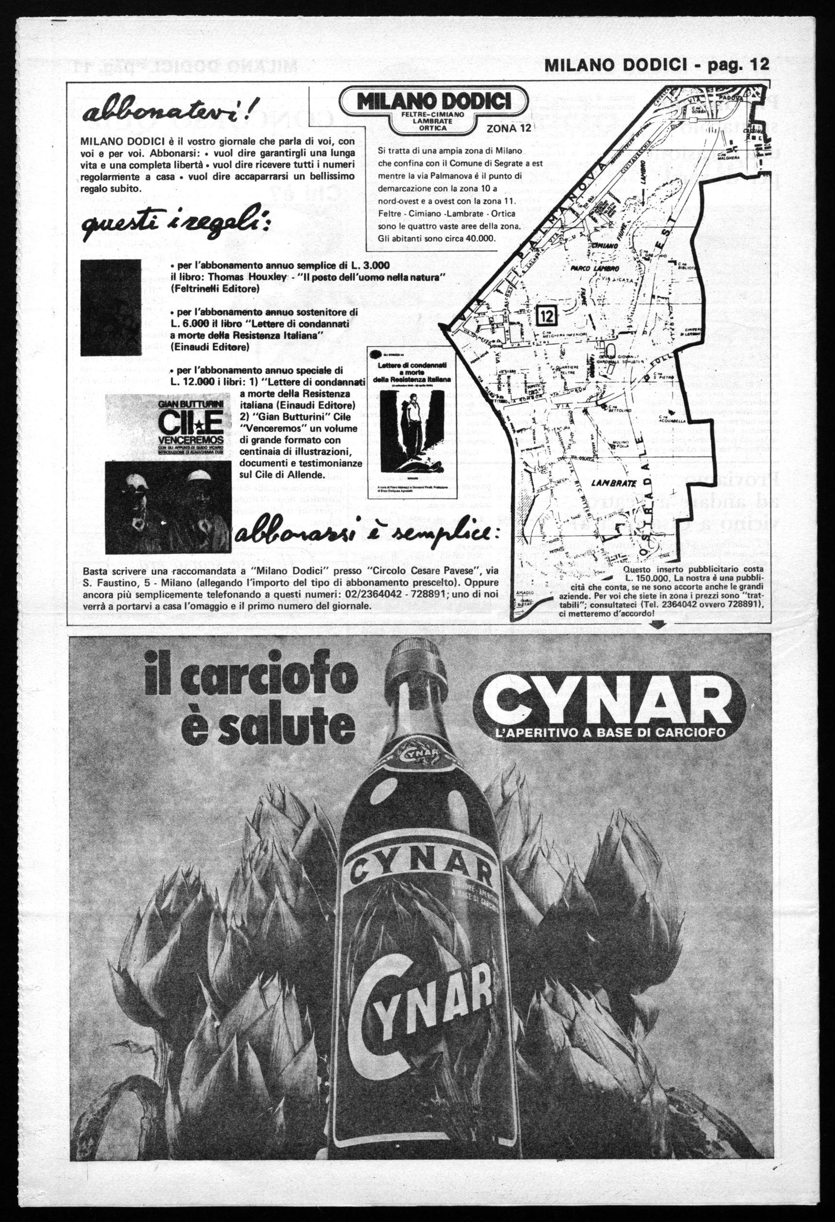 MILANO DODICI è il vostro giornale che parla di voi, con voi e per voi. Abbonarsi: Å vuol dire garantirgli una lunga vita e una completa libertà Å vuol dire ricevere tutti i numeri regolarmente a casa Å vuol dire accaparrarsi un bellissimo regalo subito.