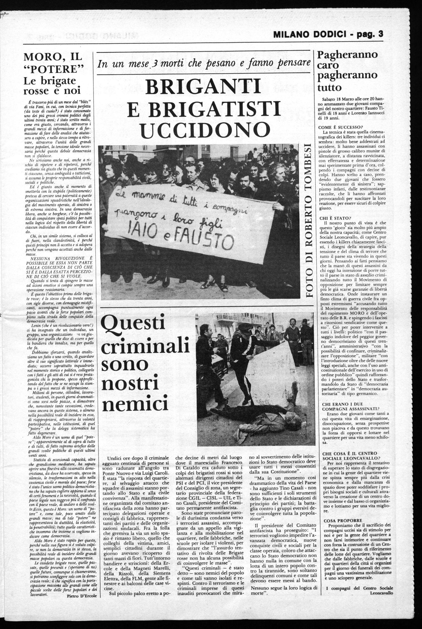 È trascorso più di un mese dal "blitz" di via Fani, in cui, con tecnica perfetta (da teste di cuoio?) è stato consumato uno dei più grossi crimini politici degli ultimi trenta anni; è stato scritto molto, come era giusto, cercando, attraverso i grandi mezzi di informazione e di formazione di fare delle analisi che aiutassero a capire, e nello stesso tempo a ritrovare, attraverso l'unità delle grandi masse popolari, la tensione ideale necessaria perchè questa debole democrazia non si sfaldasse.