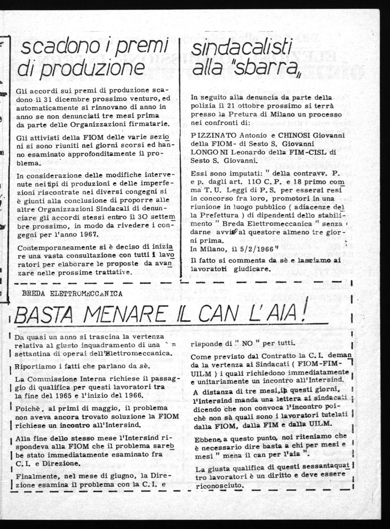 i Riportiamo i fatti che parlano da sè. La Commissione Interna richiese il passagI gio di qualifica per questi lavoratori tra la fine del 1965 e l'inizio del 1966.