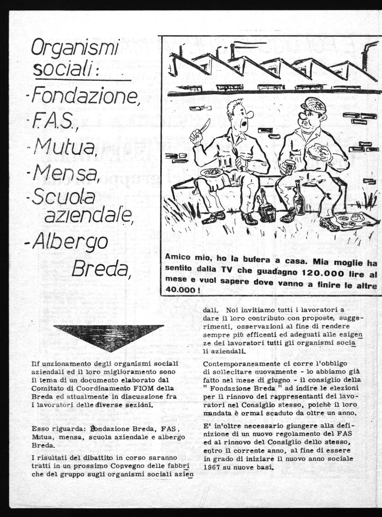 Ilf unzionamento degli organismi sociali aziendali ed il loro miglioramento sono il terna di un documento elaborato dal Comitato di Coordinamento FIOM della Breda ed attualmente in discussione fra i lavoratori delle diverse sezidni.