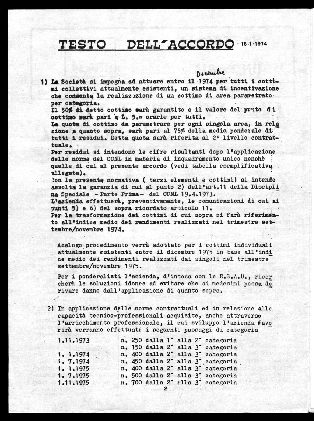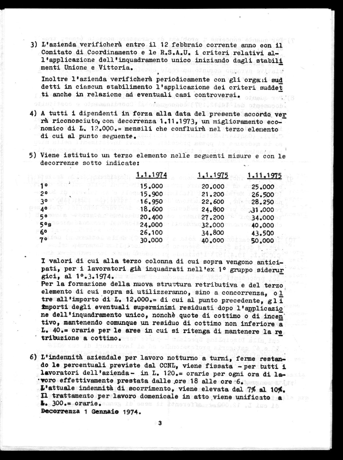 L'azienda verificherà entro il 12 febbraio corrente anno oon il Comitato di Coordinamento e le R.S.A.U. i criteri relativi all'applicazione dell'inquadramento unico iniziando dagli stabili menti Unione e Vittoria.