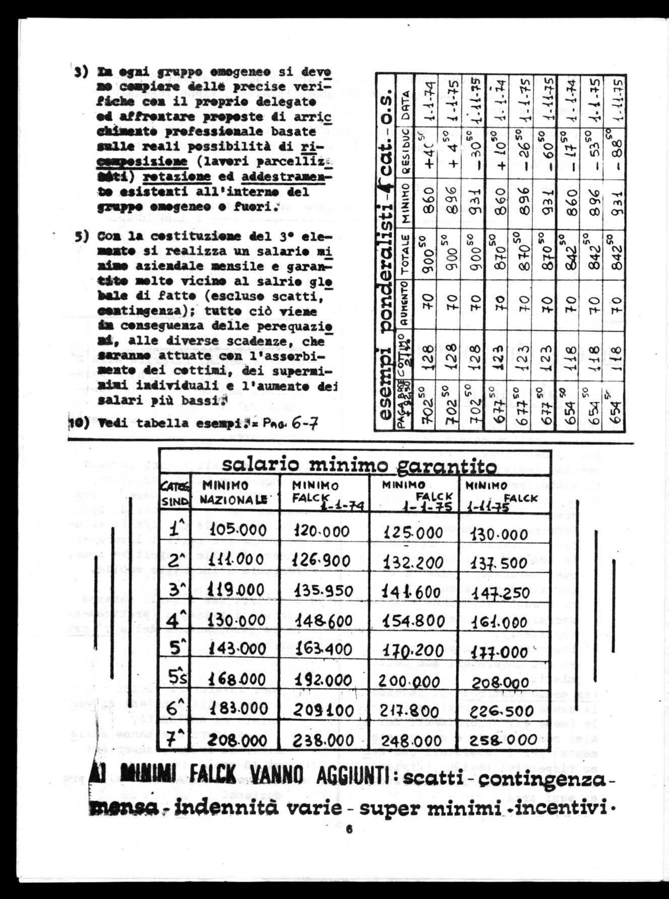 5) Coi la costituzione del 3• elemento si realizza un salario mi ami aziendale mensile e gara::: t$to malto vicino al salrie gio baie di fatto (escluse scatti, comtiagenza); tutte ciò viene La conseguenza delle perequazie al, alle diverse scadenze, che saranno attuate con l'assorbimeate dei cottimi, dei superaimimi individuali e l'aumento dei salari più bassi: