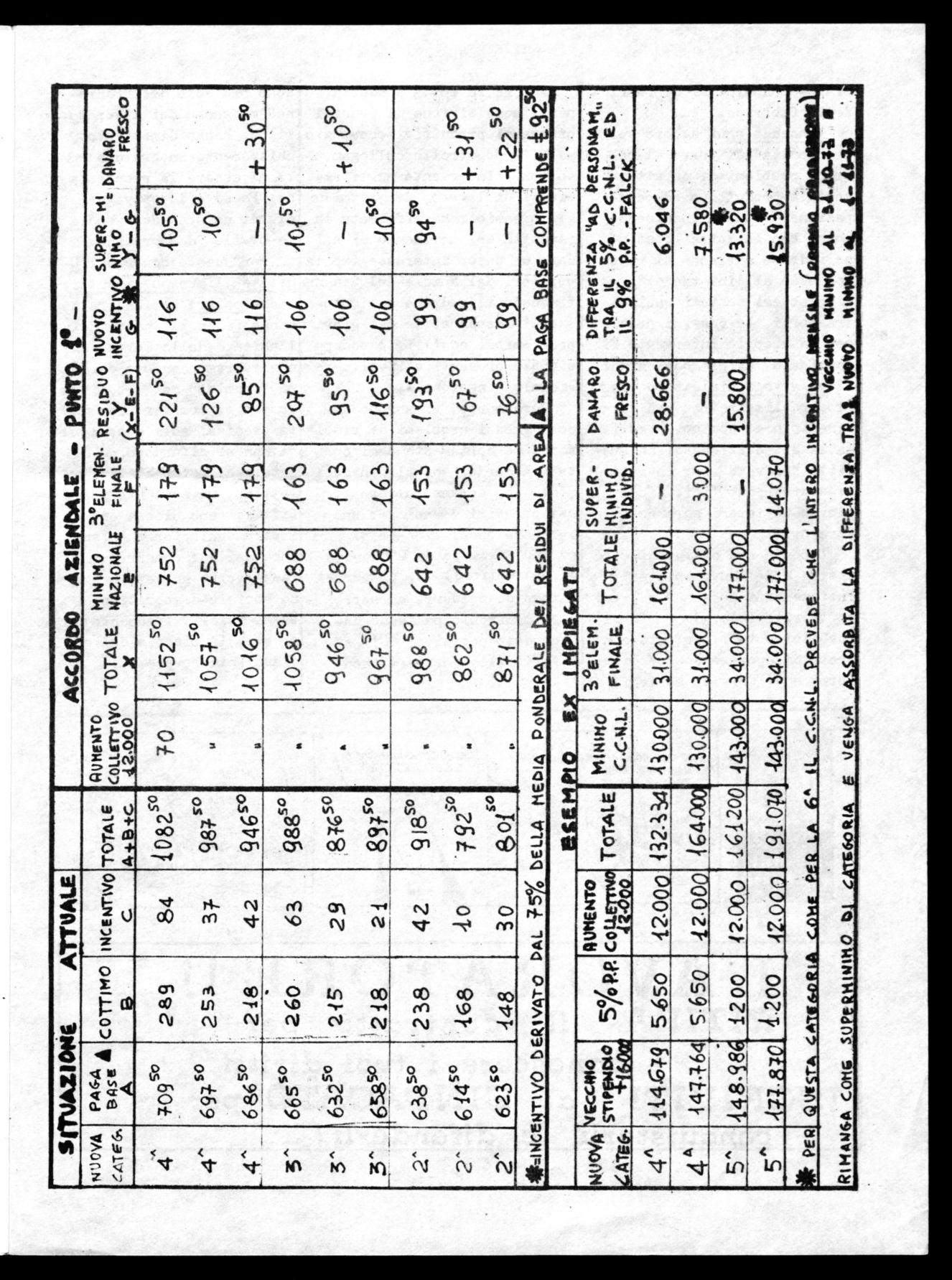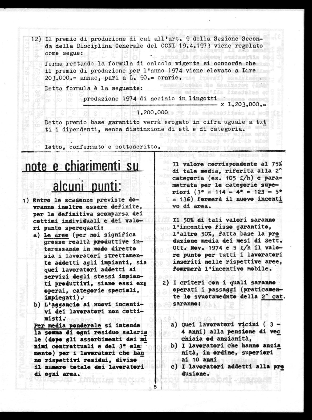 Il 50% di tali valori saranno l'incentivo fisso garantito, l'altro 50%, fatta base la pro duzione media dei mesi di Sett. Ott. Nov. 1974 e 5 £/h il valore punto per tutti i lavoratori inseriti nelle rispettive aree, lommerà l'incentivo mobile.