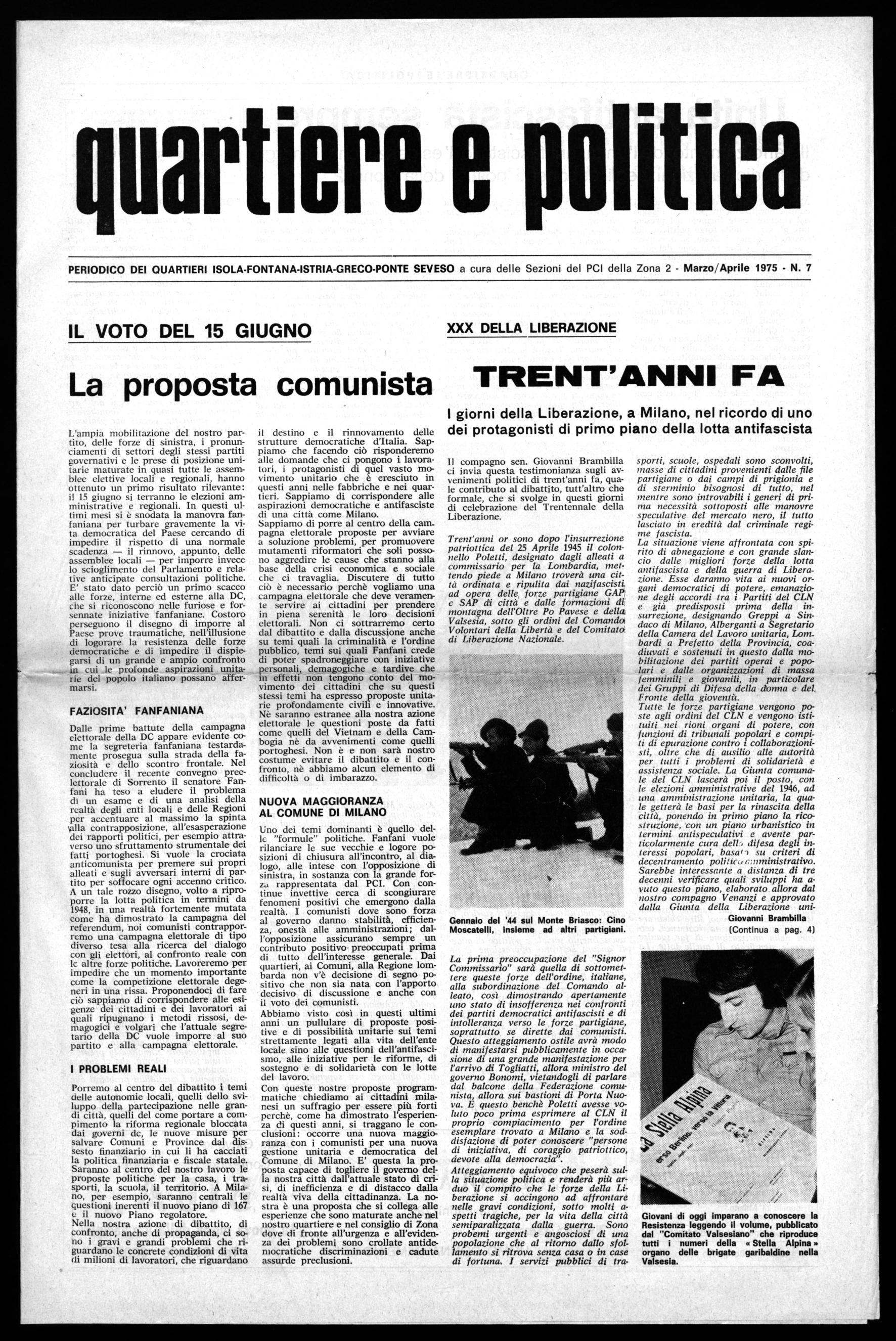 PERIODICO DEI QUARTIERI ISOLA-FONTANA-ISTRIA-GRECO-PONTE SEVESO a cura delle Sezioni del PCI della Zona 2 - Marzo/Aprile 1975 - N. 7
