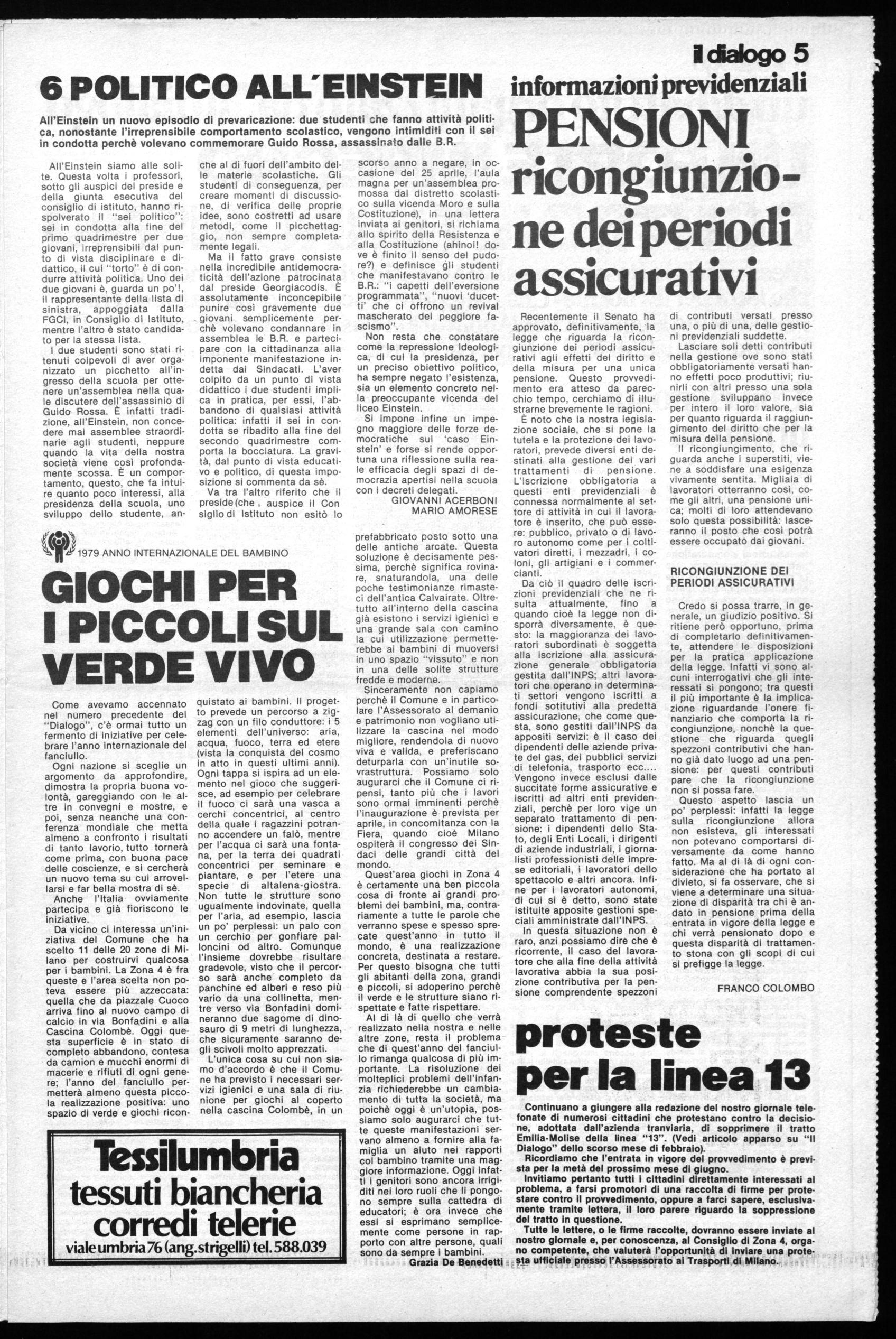 Siamo fiduciosi che questa collaborazione ci sarà; la chiediamo perchè siamo convinti che solo se i lettori risponderanno a questa richiesta, il Dialogo riuscirà ad essere veramente il giornale della zona 4.